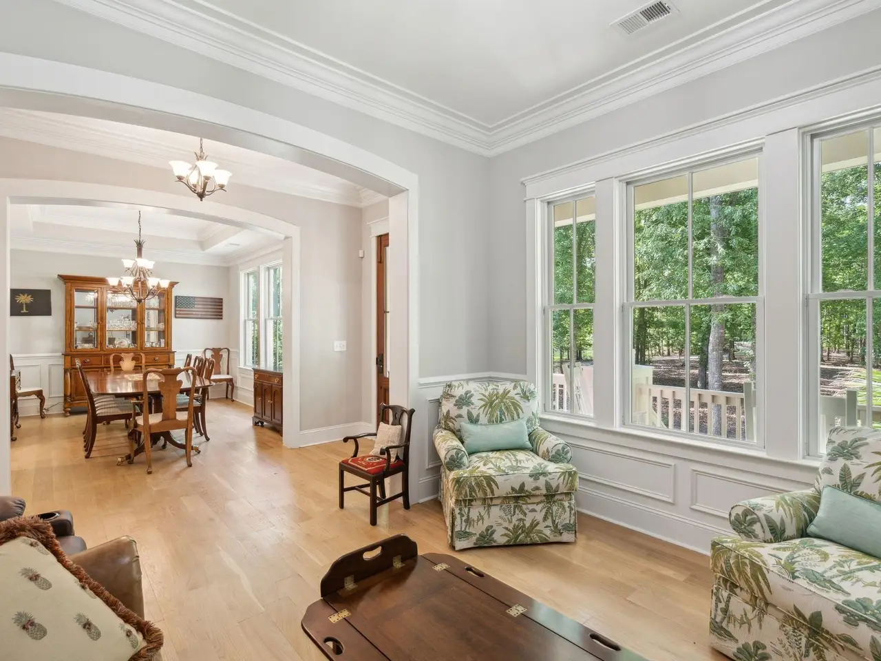 Breathtaking Marsh Views on the Wando River - Private 3-Acre Estate in Gated Pepper Plantation. Enjoy the ultimate Lowcountry lifestyle on 3 private acres overlooking the Wando River in the gated community of Pepper Plantation. Tucked at the end of a quiet cul-de-sac, this 5-bedroom, 5-bath custom-built home delivers elegance, privacy, and sweeping marsh-to-river views. The elevated, three-story home is designed for easy living and effortless entertaining. As you approach, a beautifully landscaped yard and wooded entry offer unmatched seclusion. The solid mahogany front door opens into a sun-drenched interior featuring white oak hardwood floors, high ceilings, and a seamless flow of space. A formal dining room and study flank the foyer, while the expansive great room and chef's kitchen span the rear of the home, capturing spectacular views. The kitchen is outfitted with top-tier appliances including a 48" Sub-Zero refrigerator, Wolf double ovens and gas cooktop, farmhouse sink, and granite countertops. A generous breakfast nook is wrapped in windows and overlooks the water, the perfect spot for family meals or morning coffee. The main-level primary suite is a private sanctuary with panoramic views of the Wando River, dual walk-in closets, and a spa-inspired bathroom with double vanities, walk-in shower with rain head, and soaking tub. An additional guest suite and full bath are also located on the ground floor. Upstairs are three additional bedrooms, one with an en suite bath, and two sharing a Jack & Jill, plus a large bonus room ideal for a media room, playroom, office or sixth bedroom. The ground level features a climate-controlled bonus space with a full bath, ideal for a home gym, artist's studio, or guest suite. The 3-car garage offers epoxy-coated floors, a workshop area, and ample storage. Step outside to your own private oasis. The screened-in porch with wood-burning fireplace opens to a spacious backyard with a travertine-surround saltwater pool, all framed by moss-draped oaks and uninterrupted marsh views. Enjoy outdoor dining, evening sunsets, or weekend gatherings in this truly exceptional setting. Additional features include: - 3-stop elevator - Whole-home generator - Standing seam metal roof - Impact-rated windows and doors - Fenced backyard with direct bathroom access from pool area Pepper Plantation is an exclusive enclave of custom homes offering privacy, natural beauty, and unique amenities. Residents enjoy an equestrian-style setting with a training track, riding trails, and a picturesque pavilion overlooking a freshwater lake, perfect for weddings, events, or community gatherings. Located just 12.5 miles from Isle of Palms beach and 15 miles from downtown Charleston, this community offers the perfect blend of quiet Lowcountry living with Charleston convenience.