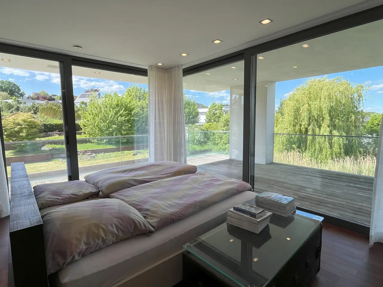 Welcome to a place that shines like a hidden jewel in the middle of nature - a villa that conveys a feeling of security and freedom with its timeless elegance and light-flooded rooms. Accessible via a private driveway, this is a paradise for anyone looking for something special: Space for dreams, relaxation and unforgettable moments. Built in 2010, this masterpiece combines modern architecture with a warm, inviting atmosphere. The generous living space of approx. 516 m² on a spacious plot of approx. 4,605 m² offers a harmonious symbiosis of design and nature. The centerpiece is the light-flooded living and dining area, which invites you to linger with its large windows and open design. Here, indoors and outdoors merge into a single experience: the terrace, with its water basin, waterfalls and a stream, invites you to end the day with a glass of wine while the sun slowly sinks into the horizon. The house itself is a place of peace and comfort. With underfloor heating, an efficient heat pump and the highest quality materials, a space has been created here that offers a pleasant climate all year round. The private retreat area is located on the upper floor: two bedrooms, a dressing room and a luxurious master bathroom in the middle, which invites you to dream with a free-standing bathtub, rain shower and access to the balcony. The rooms extend over a total of 3 floors and offer plenty of space for individual living. An elevator ensures barrier-free access to all levels of the house. The basement reveals another gem: a stylish bodega with wine cellars, a historic art nouveau bar dating back to 1902 and a generous additional usable area that invites you to enjoy convivial evenings and special occasions. The garden is a real natural paradise - a park-like retreat with a pond, waterfalls, stream and lovingly planted plants. Here you can unwind, enjoy nature and take a break from everyday life. For even more feel-good moments, the pond can be converted into a swimming pond. Security and convenience go hand in hand here: video surveillance, fingerprint access and a central control system for lighting, water and outdoor facilities ensure carefree living. The elegant SieMatic kitchen, equipped with appliances from Gaggenau, Miele and Siemens, is a dream for every cooking enthusiast and invites you to create culinary delights. This home combines luxury, technology and nature in a unique way. It is more than just a house - it is a place where dreams become reality, a refuge for all those who appreciate something special. Nothing is missing here! Let yourself be enchanted by the extraordinary ambience of this unique property!