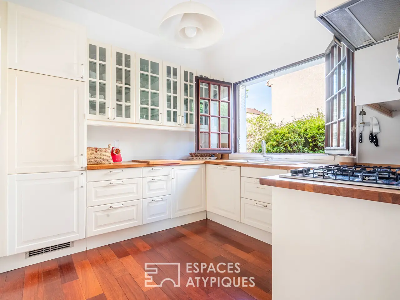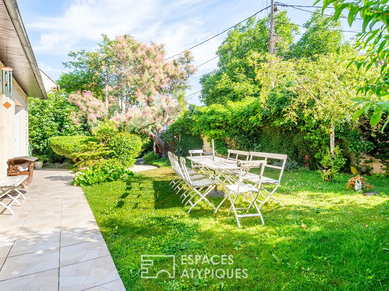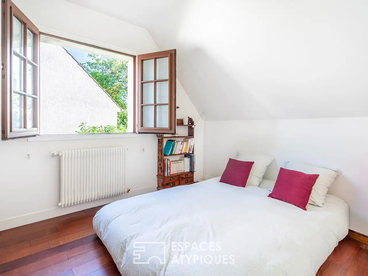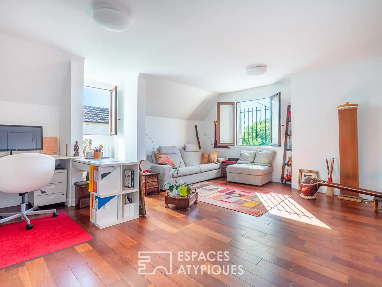 On the edge of the 20th arrondissement and Les Lilas, in a quiet cul-de-sac, this freehold house of approximately 200 m2 (170 m2 of living space) benefits from a 100 m2 garden. Built in 1978, it stands out for its lack of adjoining walls, a rare asset just a few meters from Paris. A gate opens onto a landscaped garden, sheltered from view. Located at the front of the house, this green setting constitutes a true threshold, a green space between urban bustle and privacy. The entrance leads to a dining room with a semi-open kitchen. On the other side is a 40 m2 living room topped with exposed beams and adaptable to suit your needs and desires. A bathroom and a separate toilet complete this level. Upstairs, there are three bedrooms, one of which is currently used as a TV room and office. A shower room, a separate toilet, and numerous custom-built storage units complete this level. The full basement, accessible from both inside and from the garage ramp, is divided into several spaces, including a lounge, a laundry room, a powder room (with a macerator toilet), and a technical room/workshop. The absence of shared walls, the generous volumes, and the tranquility of the surroundings make this a perfect place for an artistic activity or for practicing a liberal profession, in complete independence. A unique and family-friendly living environment, conducive to both creativity and entertaining. A closed garage and the possibility of parking several vehicles on the access ramp complete this property. Metro line 11: Mairie des Lilas, 1 km awayTram T3b: Adrienne Bolland, 650 meters awayREF. 11879Additional information* 6 rooms* 3 bedrooms* 1 bathroom* 1 bathroom* Outdoor space : 365 SQM* Parking : 4 parking spaces* Property tax : 1 926 €Energy Performance CertificatePrimary energy consumptiond : 243 kWh/m2.yearHigh performance housing*A*B*C*243kWh/m2.year40*kg CO2/m2.yearD*E*F*GExtremely poor housing performance* Of which greenhouse gas emissionsd : 40 kg CO2/m2.yearLow CO2 emissions*A*B*C*40kg CO2/m2.yearD*E*F*GVery high CO2 emissionsEstimated average annual energy costs for standard use, indexed to specific years 2021, 2022, 2023 : between 3470 € and 4750 € Subscription IncludedAgency feesThe fees include VAT and are payable by the vendorMediatorMediation Franchise-Consommateurswww.mediation-franchise.com29 Boulevard de Courcelles 75008 ParisInformation on the risks to which this property is exposed is available on the Geohazards website : www.georisques.gouv.fr