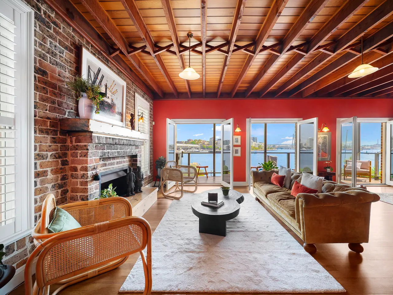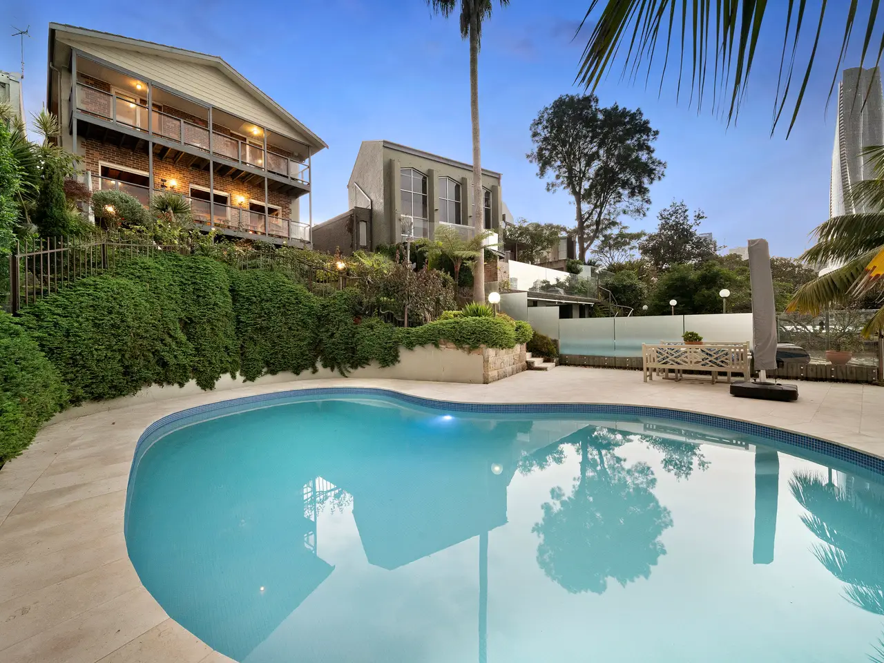 View by appointment Tightly held for 41 years and offered for only the second time, this street-to-waterfront property occupies approx. 607sqm in one of the area's most secluded harbourside enclaves and with panoramic views over the harbour encompassing the Anzac Bridge, Jacksons Landing, Pirrama Park, Darling Harbour, the city and Barangaroo. The home is tucked away in a highly regarded location and features landscaped terraced gardens to the water's edge including approx. 91sqm of boating facilities, a swimming pool and and a side gate at the waterfront providing access to the neighbouring beach and tidal pool. The home showcases two light filled levels with thoughtful renovations designed to maintain both architectural authenticity and modern comfort, including a unique chalet-style retreat upstairs with solid timber cathedral ceilings. A true paradise for entertaining, the home combines generous space, floorplan flexibility and spectacular unobstructed views in a breathtaking location. - Entry with soaring double height ceilings and leadlight windows - Beamed timber ceilings, exposed brick and solid hardwood floors - Each level opens to rear balcony taking in the extraordinary views - Spacious living & dining areas plus two studies that offer versatility - Island kitchen/meals with granite benchtops and quality appliances - Four bedrooms upstairs plus ground floor rumpus/fifth bedroom - Main bathroom with bath, second bathroom, guest powder room - Two ducted r/c air conditioning systems, 4,000L rainwater storage - Hardwood decks, 10m salt pool, private jetty, pontoon, mooring poles - Jetty accommodates a 10.4m vessel with a draft of 3.5m - Shaded car space, 11kW solar panels, EV charger w/ 13kW battery - Footsteps from Illoura and Peacock Point Reserves on the harbour - Within 450m of Balmain East village shops, cafes and the ferry wharf