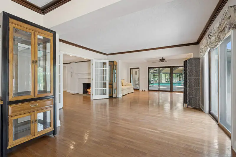 A rare opportunity to own 20+ prime acres in sought-after Barrington Hills! This exceptional 9,000+ sq ft estate offers resort-style living with an incredible indoor pool, expansive living areas, and a separate log-cabin-style guest house-all set amidst serene countryside. The main residence features five bedrooms and seven full baths, including a convenient main-floor suite with ensuite bath, ideal for one-level living. The dramatic great room is a showstopper with soaring tongue-and-groove vaulted ceilings and a striking floor-to-ceiling, four-sided stone fireplace. An adjacent family room with sliders to the patio creates a seamless flow for entertaining. The light-filled kitchen offers abundant cabinetry and counter space, opening to the great room and flowing into a spacious dining room with picturesque views of the backyard. A separate living room and sitting area lead to the indoor pool retreat, complete with vaulted ceilings, skylights, hot tub, slide, walls of sliding glass doors, and a spiral staircase to a second-floor bonus room. Additional highlights include a main-level sauna bath off the game room and a private second floor primary suite with French door entry, vaulted ceilings, a large walk-in closet/dressing room, and a spa-like ensuite. Upstairs, you'll find three generous secondary bedrooms-including a second primary suite-and three full baths. The property includes a barn with a stunning 3,000+ sq ft "Yellowstone-style" log cabin guest house offers two bedrooms, two full baths, an office, soaring beamed great room with floor-to-ceiling fireplace, and full kitchen-perfect for guests, extended family, or private retreats. An attached outbuilding features a two-stall barn with tack room, along with ample space for equipment and service vehicles. Garage space abounds with a three-car attached garage and a detached 6-car garage that can accommodate up to 10 vehicles. Whether you're dreaming of a family compound, equestrian estate, or hobby farm, the possibilities here are endless. All this in the award-winning D220 school district and just minutes to charming downtown Barrington, Metra, restaurants, and shopping.