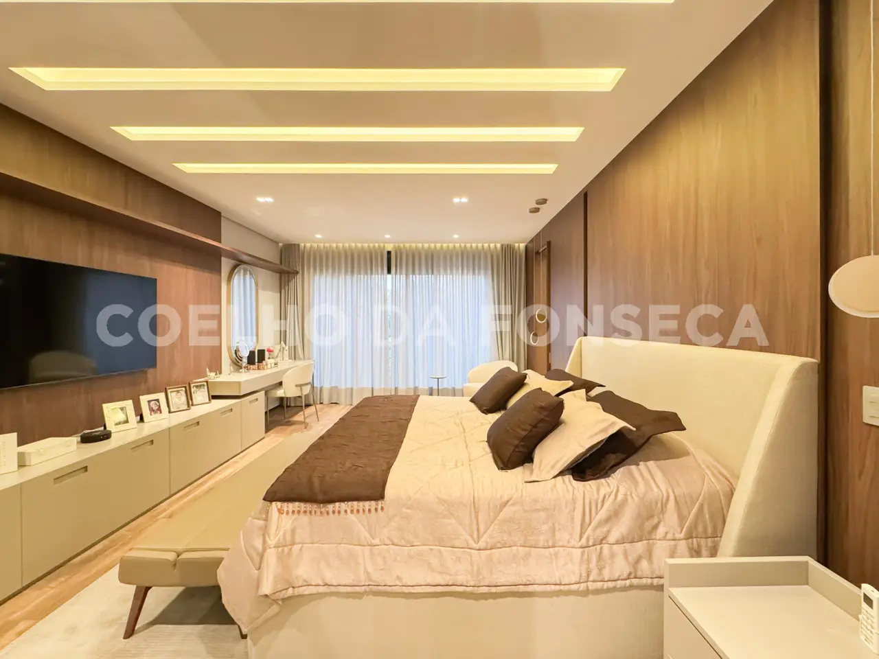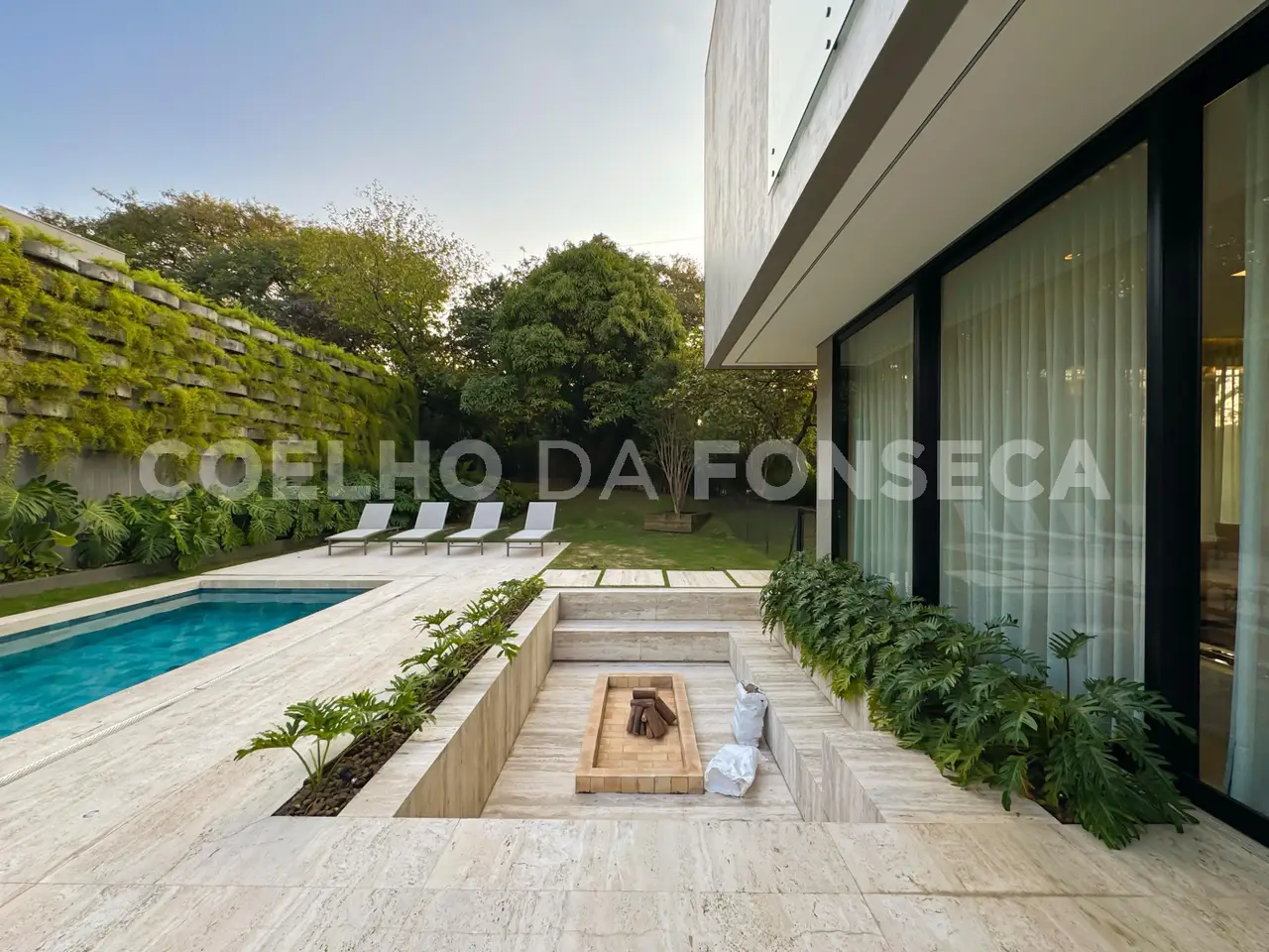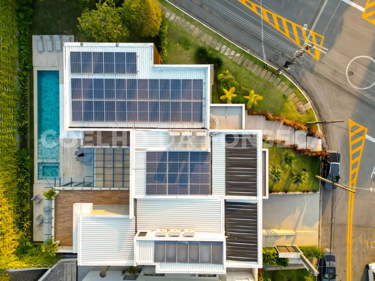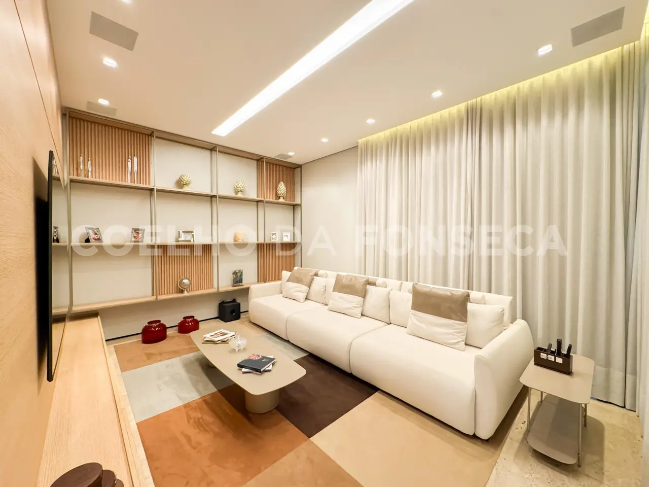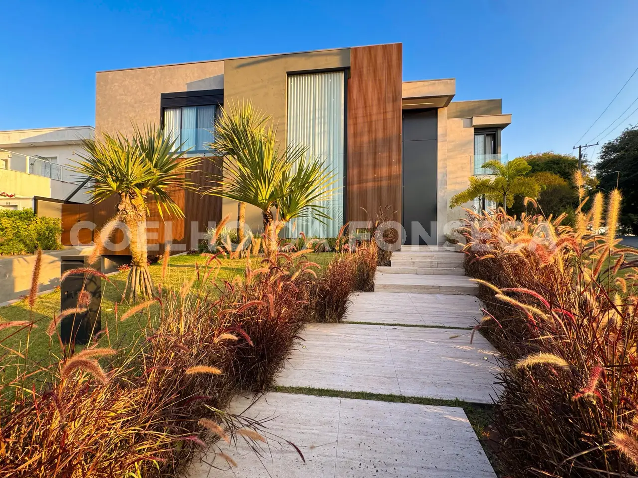 Beautiful house close to the gate. Generous living room with double height ceiling, eco-friendly fireplace, rooms facing the garden. Home theater, wine cellar and gourmet space designed for 3 rooms and integrated with the kitchen. High-end finishes. Leisure area with swimming pool covered in Hijau jade Palimana volcanic stone, jacuzzi and deck. All of this surrounded by beautiful landscaping and a vertical garden. House in the ALPHAVILLE 2 condominium, with 900m² built area, 5 bedroom(s), 5 suite(s), 8 parking space(s), 9 bathroom(s), swimming pool, accepts exchange, corner, sauna, air conditioning, maid's room, balcony, elevator, solar heater, double height ceiling.