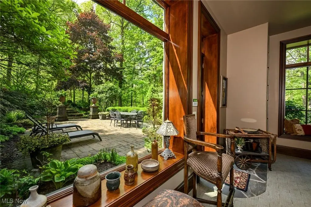 PRIVATE winding driveway over a charming bridge leads to this Spectacular property, Elevated 130 ft, breathtaking views of the Yellow Creek River Valley. Situated on 13 wooded acres w/7000+ SF of exceptional quality from building materials to custom finishes. European influences are reflected in the design of this home, offering remarkable living experiences w/natural beauty & architectural excellence. Exquisite Pennsylvania flagstone flooring runs throughout main floor warmed by radiant heat. Massive 3 sided stone FP anchors home, open to Great room w/ vaulted ceilings, beams, & wall of built-ins balanced by floor to ceiling windows flooding natural light & showcasing magnificent views. Fabulous open floor plan continues with octagonal Dining rm details including 22Ft ceiling leads to butlers pantry and bar adjoining lovely Kitchen appointed w/custom cabinets, top of the line appliances, opening to a fabulous keeping room w/ soaring ceiling. Luxurious FF primary suite, provides private retreat, w/ bathroom, sep vanities, and walk in closet. Extending the main living is a fabulous screened porch with flagstone floor & FP. FF is complete w/ laundry, mudroom and 3.5 heated garage. Ascending the second floor is a huge Guest Suite w/full bath, huge workout room, and private office. From foyer, lovely staircase designed w/huge window, presents stunning views as you descend to the walkout LL(2000SF). This incredible living space w/12 ft ceilings offers 2 generous bedrooms (ensuite), abundance of storage, Large family room w/ a stone FP, surrounded by windows leads to a charming stone patio. Completing the LL is a bar/kitchenette and separate theater rm. The property is equipped w/geothermal & radiant heating systems, ensuring comfort & energy efficiency & 50 year old grand manor shingle, generator, and garden shed. This property is one-of-a-kind and offers an incredibly private retreat unmatched in Northeast Ohio.