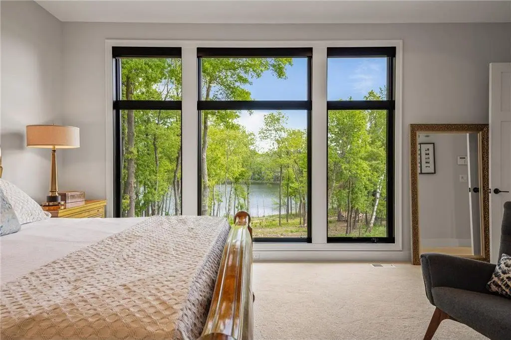 Discover refined elegance and effortless lakeside living in this stunning walkout rambler, custom-built by the renowned TJB Homes. Nestled on the serene shores of Lake McDonald, this home blends timeless craftsmanship with modern comfort—offering a rare opportunity to own a nearly new lakefront retreat in Cloverdale Farm. Soaring ceilings, expansive black Andersen windows frame breathtaking water views, and a seamless open-concept layout designed for both entertaining and everyday living. Main level living, Wirsbo In floor heat, Custom remote control window treatments, Sonos surround sound, and room to add a dock on the lake.
