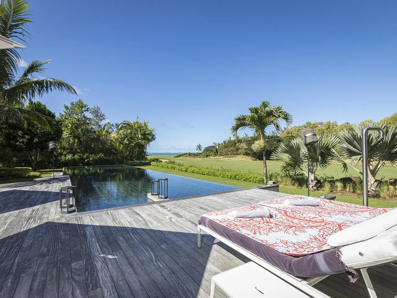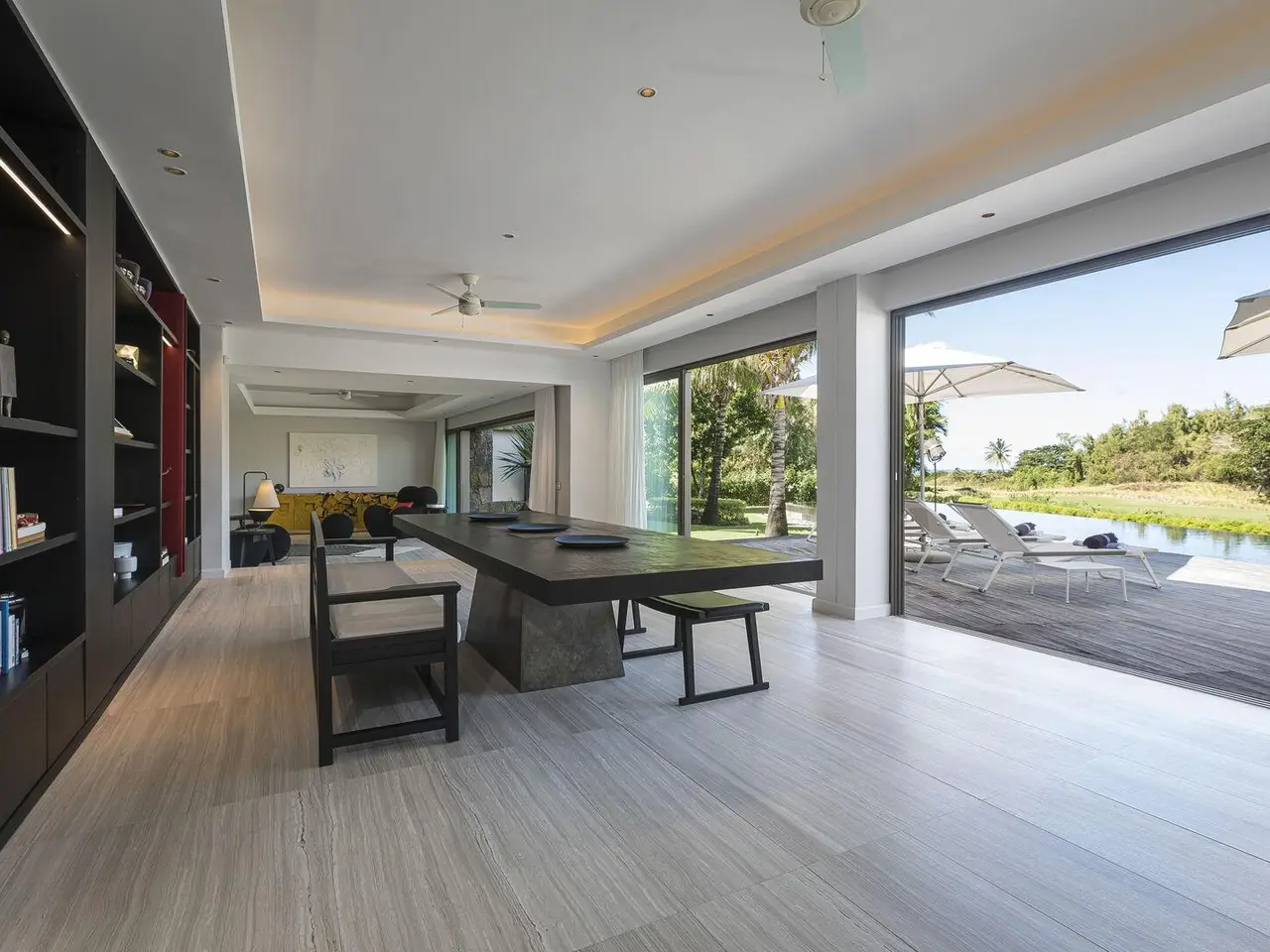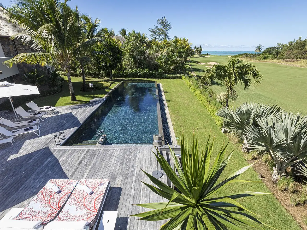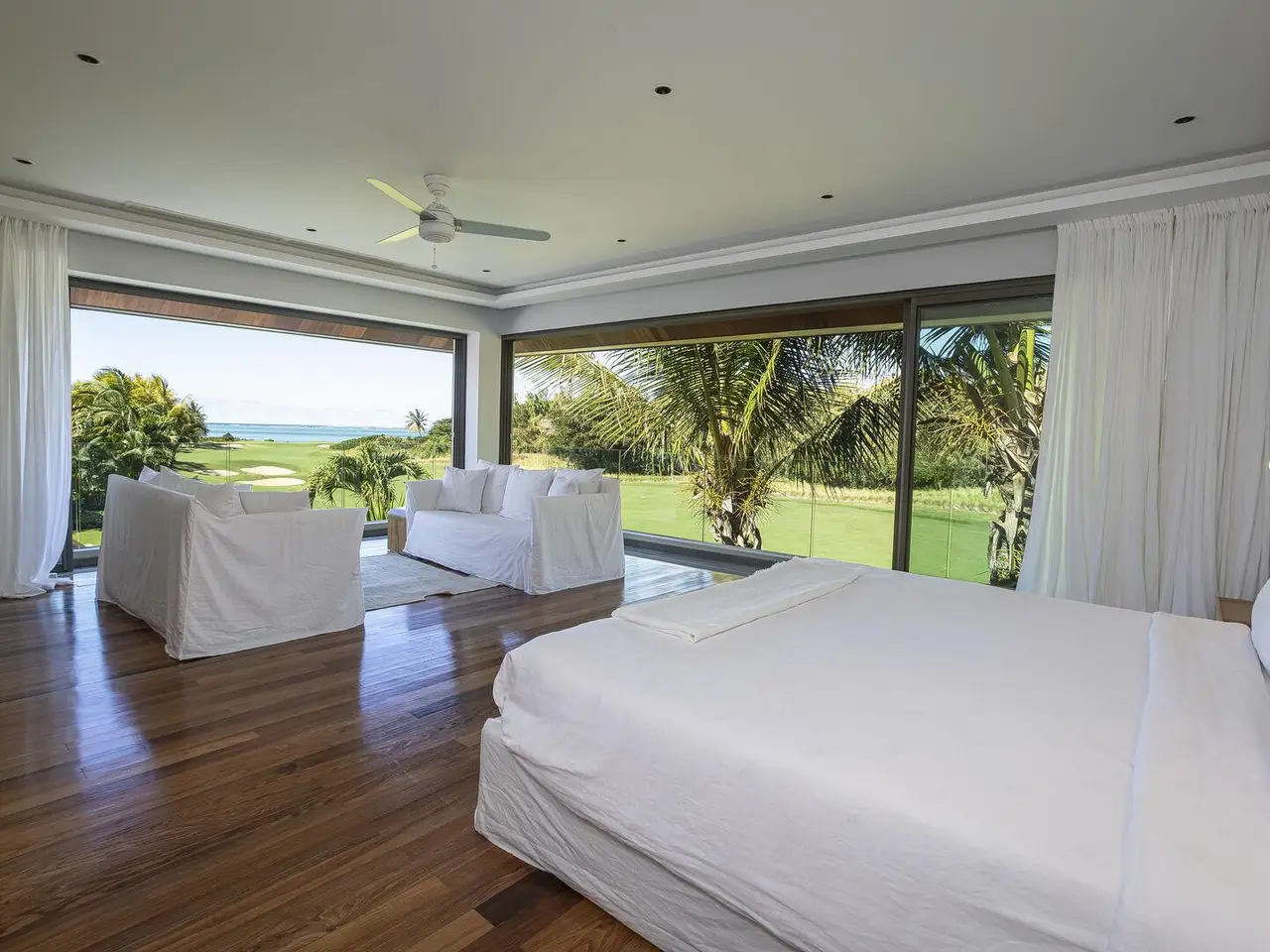 Discover an exquisite 5-bedroom villa nestled along the verdant fairways of a prestigious golf course, offering breathtaking views of both the course and the tranquil ocean beyond. Spanning 589m2 of meticulously designed living space, this residence epitomizes luxury and comfort. Immerse yourself in a serene ambiance complemented by a private pool, perfect for relaxation and leisure. As a bonus, purchasing this villa grants you access to permanent residency, making it an ideal choice for those seeking a prestigious lifestyle. Residents enjoy exclusive privileges, including access to two exceptional golf courses, a well-equipped gym, fine dining restaurants, chic bars, and tennis courts. Moreover, the opportunity to explore the picturesque island of Ile aux Cerfs adds to the allure of this exceptional location.