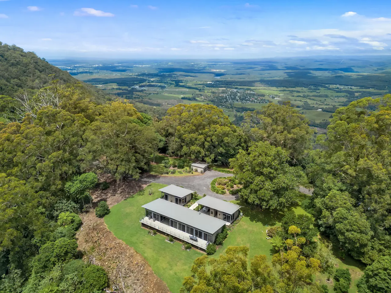 Rising high above the valley, this pavilion-style retreat reveals complete privacy and breathtaking 360-degree views spanning the escarpments, rolling countryside, and the distant waters of Jervis Bay and the Shoalhaven. Designed as an atrium of light, the home's walls of glass sliding doors dissolve the boundaries between indoors and out, framing an ever-changing panorama from sunrise to sunset. Facing northeast and above the frost line, the property enjoys full winter sun for year round warmth. The open-plan main pavilion flows from the sleek kitchen to the dining and lounge spaces, all connecting to surrounding walkways. All three bedrooms each occupy private pavilions complete with ensuite bathrooms, underfloor heating, and reverse-cycle air conditioning, while the main bedroom enjoys a front-row seat to the valley vistas. Beyond the residence, the almost three-hectare estate is enveloped by ancient eucalypts, towering Moreton Bay figs, and flourishing gardens, featuring rose beds, a productive orchard, and banks of gardenias, camellias, and hydrangeas. Positioned at the end of Tourist Road, this estate offers privacy without isolation, with Berry and Kangaroo Valley both just 15 minutes away and Bowral reachable in 40. Its elevated position delivers spectacular scenery in every direction, creating a truly unique and tranquil retreat. • Pavilion-style home on 2.79 hectares with 360-degree valley-to-coast views • Walls of glass sliding doors create a unique indoor-outdoor connection • North-east facing and above the frost line, enjoying full winter sun • Open-plan main pavilion with kitchen, dining, and lounge, with a fireplace • Three private bedroom pavilions, each with an ensuite • Potential for two more rooms to be created under the roof line • Underfloor heating and reverse-cycle air conditioning in every room • Convenient office space, carport, and shed for added functionality.