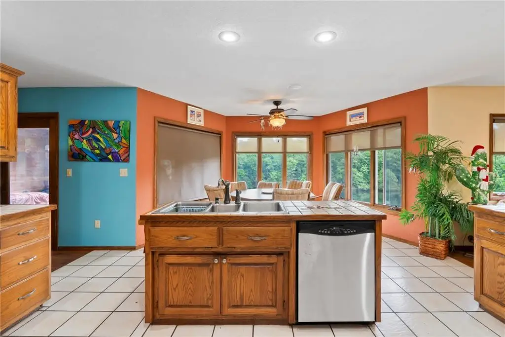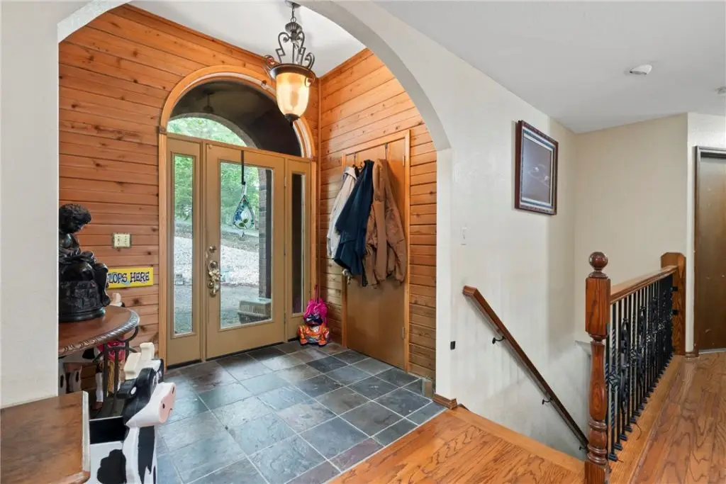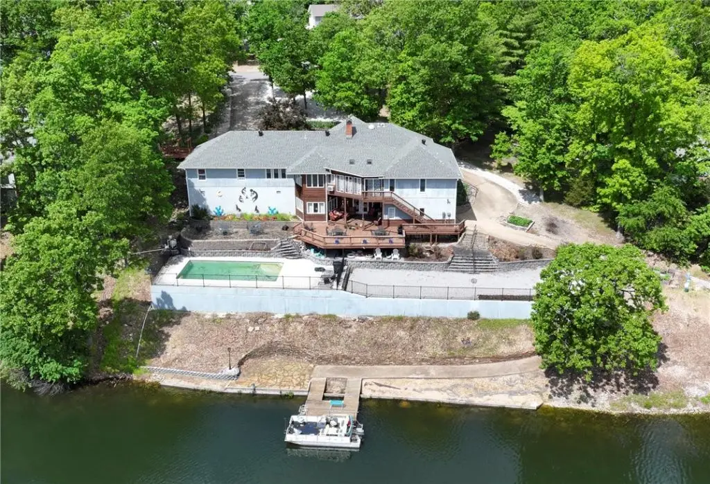 Splendida casa fronte lago con accesso privato al molo, piscina interrata recintata e circa 3.866 piedi quadrati di superficie abitabile! Situata in una strada senza uscita a Bella Vista, questa casa con 4 camere da letto e 3 bagni e mezzo offre una cucina completa e una zona giorno su entrambi i livelli, ideale per una vita multigenerazionale o per intrattenere gli ospiti. La suite padronale dispone di vasca idromassaggio e cabina doccia. Tutte le camere da letto al piano superiore sono dotate di cabina armadio. Il piano principale è accessibile ai disabili. Include angolo bar con lavandino, veranda con lucernari, pavimenti in legno/piastrelle/moquette, caminetti a gas e pellet, ripostiglio in soffitta, mobili a muro e attacchi per lavatrice/asciugatrice al piano superiore e al piano inferiore. Cucina a gas a convezione al piano superiore, cucina elettrica al piano inferiore. Garage annesso per 2 auto + garage per golf cart. Splendido giardino, 2 terrazze posteriori (in legno e in pietra) con vista sul Lago Brittany.