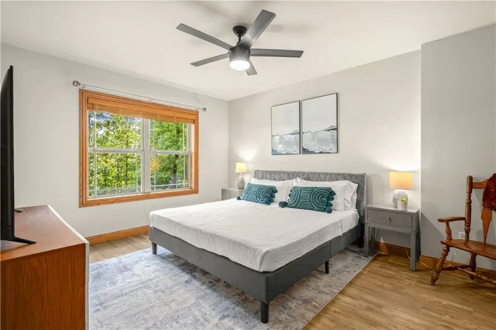 Dreamy Lakeview Retreat on Lake Ann! Currently a successful short-term rental, this one-of-a-kind home features 5 generously sized bedrooms + an office/flex space + 3 full bathrooms. The 2 livings areas, 2 FULL kitchens, and 2 laundry areas, make it particularly ideal for larger groups or multi-generational living. The primary bedroom is a true sanctuary with seasonal lake views, oversized bathroom and 3 spacious closets. Each level has a split floor plan ensuring you never feel cramped in the space. TONS of extra storage throughout! The handicapped accessible wraparound deck leads directly to the hot tub and outdoor oasis. Stunning windows in the living room and sunroom provide expansive lake views year-round. Sandwiched between the Back40 and Summit School trails, access is just down the road on Sandhurst Dr. Lake Ann Boat Ramp is only a 5 min drive. New roof in 2021 and septic was pumped + inspected in 2023. Shed, raised garden bed + so much more! Furnishings negotiable -separately- as a package.