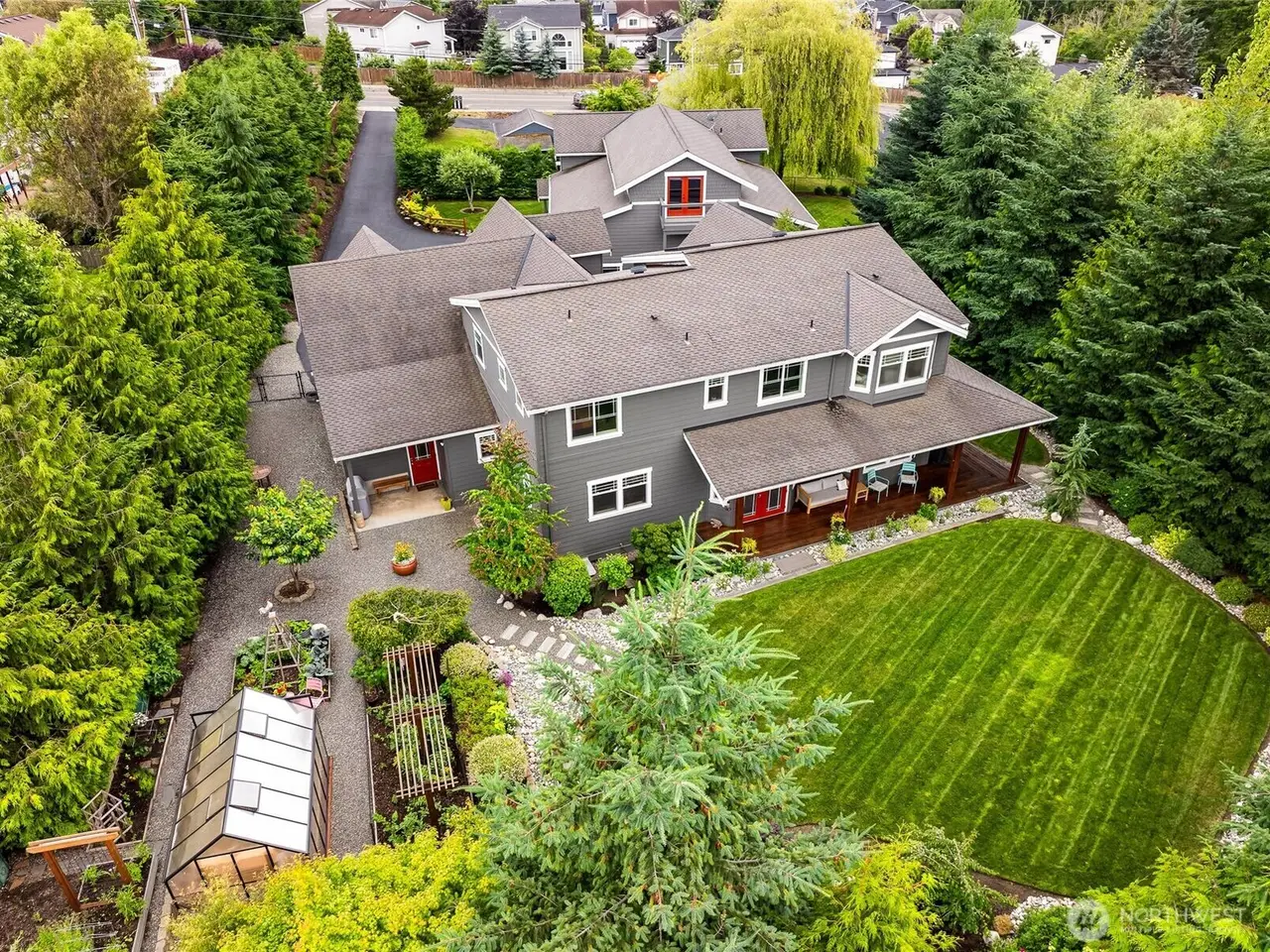 Wow factor in Bellingham! Just minutes from Lake Whatcom, Silver Beach & Barkley Village, this rare 2/3-acre property offers a pristine 3,310 SF home + a fully updated 1,416 SF ADU. Main home features an open floor plan, 3+ beds, 2.5 baths, granite & quartz finishes, a luxe primary suite, and a gorgeous wrap-around Tiger Wood deck. Outside: 8×12 greenhouse garden plus a massive 30×40 heated, insulated, plumbed shop with twin 14' RV doors & 630 SF above for office or future accessory dwelling. The accessory dwelling impresses with 3 beds, 1.75 baths, quartz counters, new flooring/cabinets, Trex deck, fenced yard & garden. Rare blend of location and lifestyle.