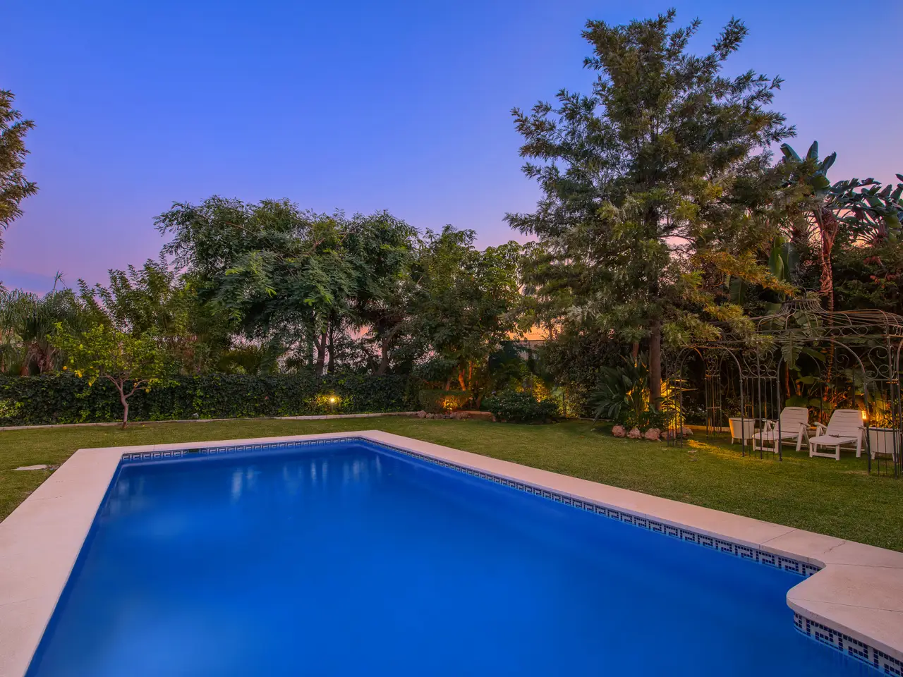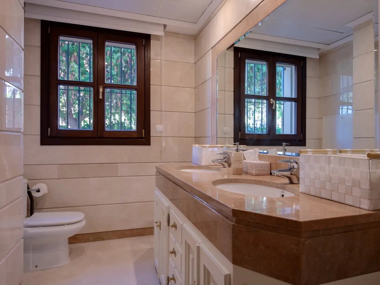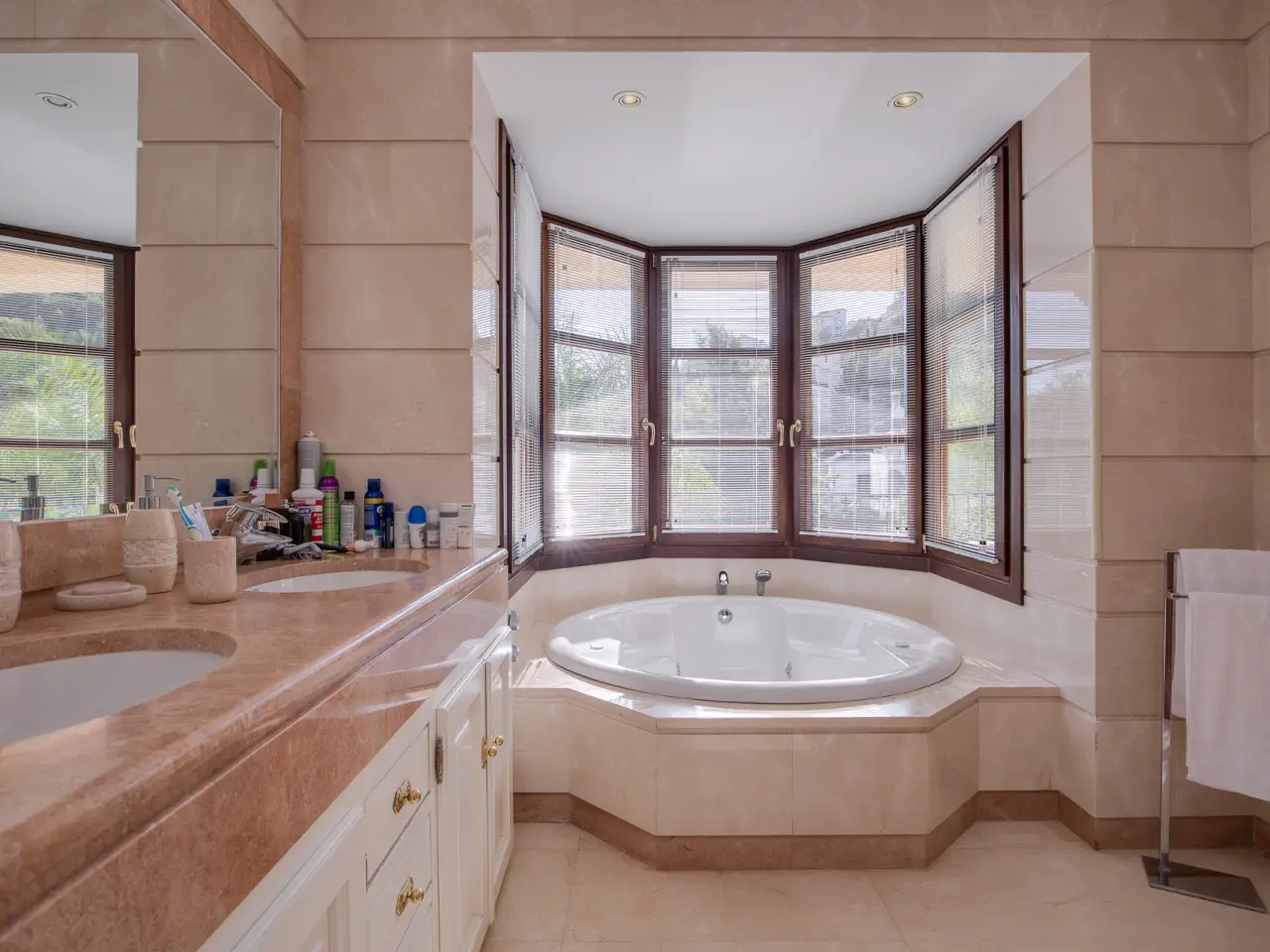 The transition from an apartment to a house, or from a bustling city to a residential area, is something many of us have experienced at some point in our lives. You might be one of these individuals, or perhaps you\'re coming from another home near a golf course. In any case, if you\'re considering making a change in your living situation or property type, and would consider this property, it\'s likely a change that will provide you with more space, tranquility, fresh air, all without giving up the convenience of living in a town with all urban amenities nearby. What if the time has come to stop prospecting and start doing it? This marvelous villa is located in Los Arqueros urbanization, with 24/7 security. It\'s situated between La Quinta, El Madronal, La Zagaleta, and San Pedro Alcántara. In close proximity to the best golf courses in Marbella and Benahavis, the area offers excellent services, restaurants, various international schools, and easy access to the highway. The property stands out for its timeless qualities, thanks to the use of noble materials in its construction. It features highly efficient AC and heating technologies, with underfloor heating throughout the house based on aerothermal systems and solar panels. The rooms are very spacious, each with an ensuite bathroom, and the garage can easily accommodate 4 cars, with an existing electric car charging installation. This wonderful villa features two basement floors, one of which is open-plan, while the other is designed to accommodate a gym and a hammam with a 10,000-liter water reserve. The mature garden provides an oasis of tranquility around a spacious pool and seating area. Everything is just ready to create your new home. Would you like to call us to request a viewing?