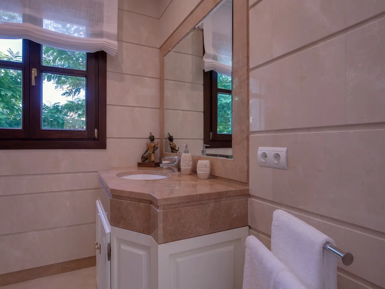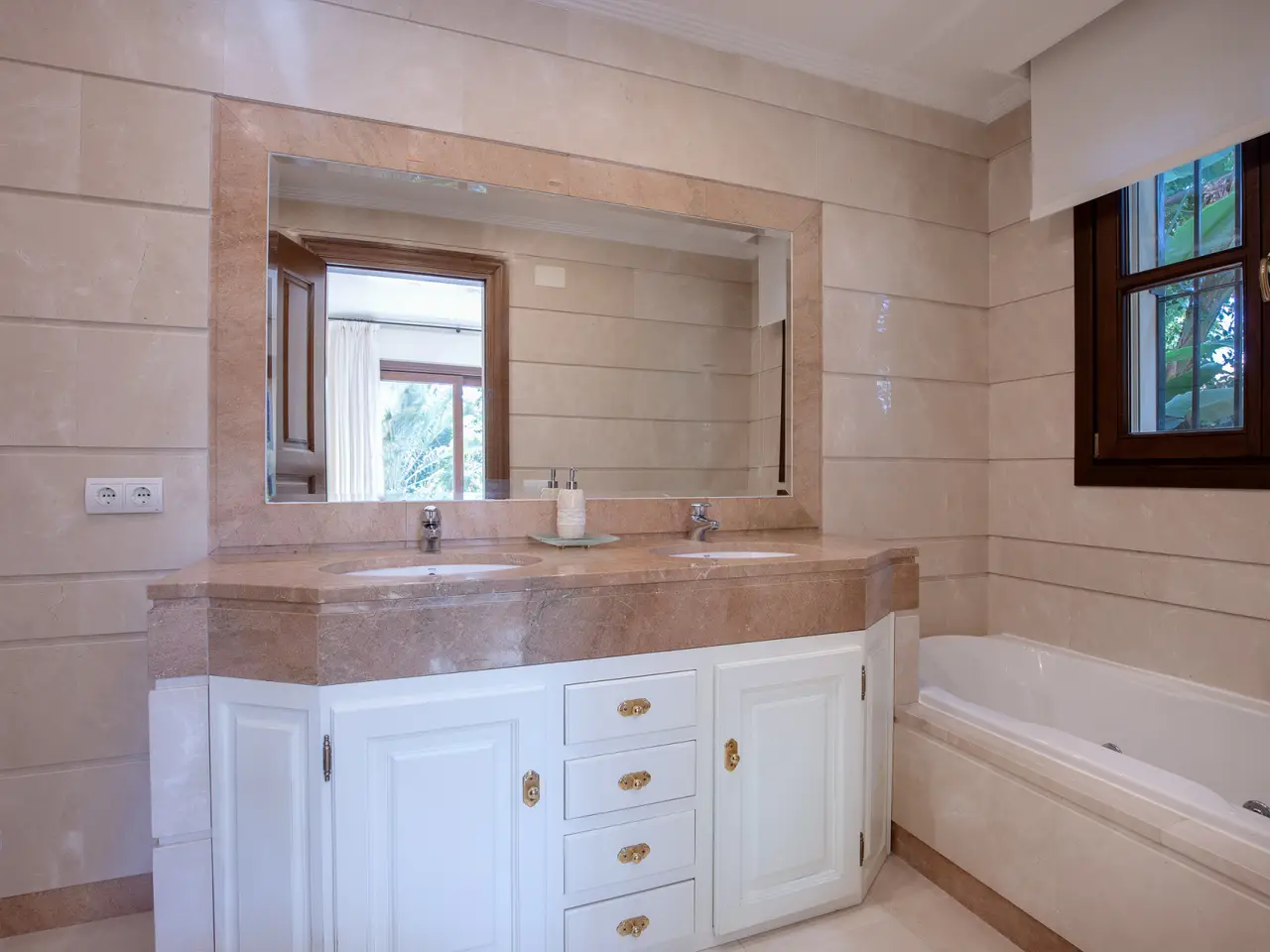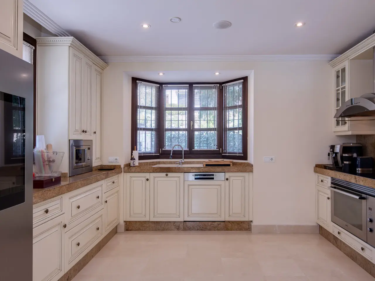 The transition from an apartment to a house, or from a bustling city to a residential area, is something many of us have experienced at some point in our lives. You might be one of these individuals, or perhaps you\'re coming from another home near a golf course. In any case, if you\'re considering making a change in your living situation or property type, and would consider this property, it\'s likely a change that will provide you with more space, tranquility, fresh air, all without giving up the convenience of living in a town with all urban amenities nearby. What if the time has come to stop prospecting and start doing it? This marvelous villa is located in Los Arqueros urbanization, with 24/7 security. It\'s situated between La Quinta, El Madronal, La Zagaleta, and San Pedro Alcántara. In close proximity to the best golf courses in Marbella and Benahavis, the area offers excellent services, restaurants, various international schools, and easy access to the highway. The property stands out for its timeless qualities, thanks to the use of noble materials in its construction. It features highly efficient AC and heating technologies, with underfloor heating throughout the house based on aerothermal systems and solar panels. The rooms are very spacious, each with an ensuite bathroom, and the garage can easily accommodate 4 cars, with an existing electric car charging installation. This wonderful villa features two basement floors, one of which is open-plan, while the other is designed to accommodate a gym and a hammam with a 10,000-liter water reserve. The mature garden provides an oasis of tranquility around a spacious pool and seating area. Everything is just ready to create your new home. Would you like to call us to request a viewing?
