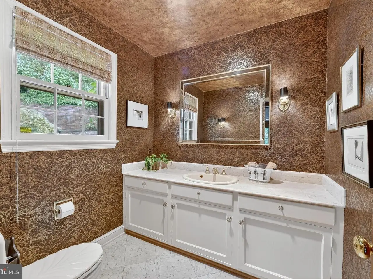 GREAT NEW PRICE ADJUSTMENT!! Fabulous opportunity to update and personalize this stately hillside home on a quiet drive in coveted Bannockburn Estates - an ideal property for entertaining on both a grand and intimate scale. The first level features a wide center-hall foyer, an elegant, embassy-sized living room, formal dining room, table-space kitchen, main-floor laundry, a large paneled family room with wet bar and powder room, plus a glass-enclosed sunroom with access to a flagstone patio, multi-level pool area and a wooded path with two more patios above. The second floor boasts four spacious bedrooms and three baths, including an expansive sitting area/office off the primary bedroom with built-ins and storage galore. The walk-out lower level offers a large paneled rec room, full bath and bonus room. With more than 6600 sf of living space, three fireplaces, slate & copper roofing, lush grounds, a double garage, extensive hardscaping, exterior lighting, an in-ground sprinkler system and more, all on a 20,000+ sf lot, this property is truly an oasis to call home.