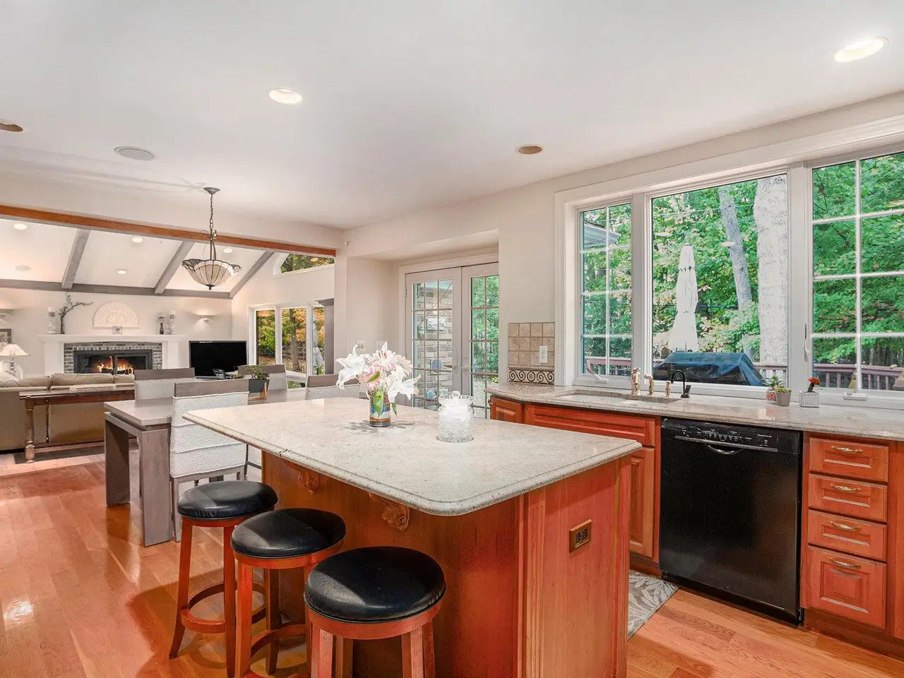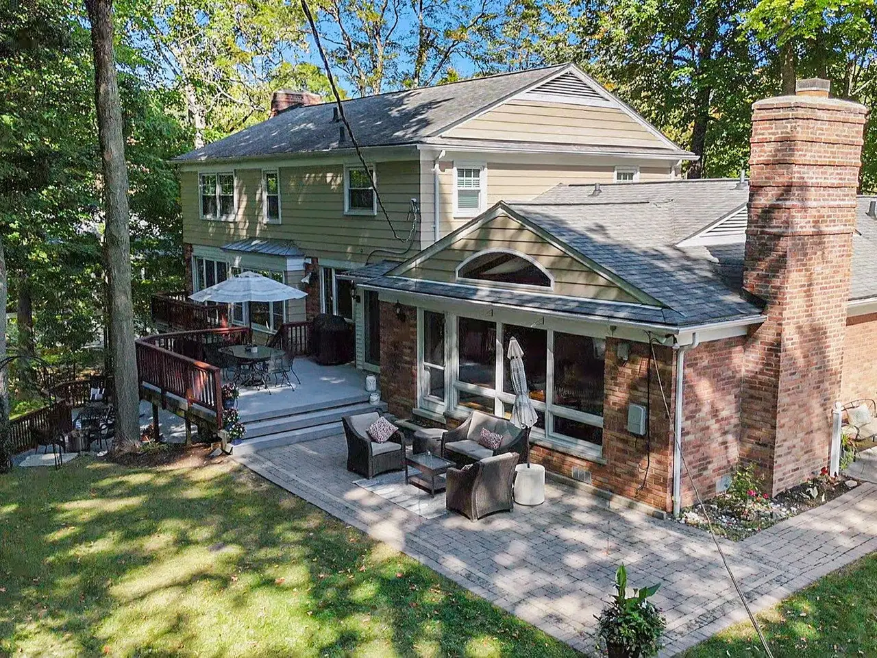 Welcome to One of Nottingham Forest’s Most Desirable Lots! Experience an “up north” feel right at home, surrounded by stunning wooded views and large open spaces. This exceptional property combines natural beauty w/ spacious, comfortable living. The inviting family room features vaulted ceilings w/ beautiful wood beams, large windows that frame the serene scenery, recessed lighting, & a natural fireplace. The space flows seamlessly into a large kitchen complete w/gorgeous wood cabinetry, an island w/ seating, & double doors that open to a wonderful backyard. Enjoy multiple outdoor areas, including a large patio and decks on two levels, w/ walkouts from the kitchen, family room, & lower level. The first floor offers generous living spaces filled w/ natural light, including a large living room w/ its own private deck/balcony. Upstairs, hardwood floors extend throughout the entire level, which includes 4 spacious bedrooms, two featuring built-in bookcases & shelving. A first-floor office provides a flexible space perfect for working from home, homework, reading, or TV relaxation, & could easily serve as a fifth bedroom if desired. The home features 2 beautifully updated full baths & 3 updated half baths, providing both comfort & convenience for family and guests. Additional highlights include a formal dining room & a large first-floor laundry. The lower level is a showstopper—featuring another fireplace, a craft area, a workout room, a half bath, & plenty of storage. Step outside to yet another deck and a truly exceptional backyard, perfect for entertaining, playing, and enjoying the outdoors. A gentle sledding hill along w/ a scenic ravine which flow along the side yard, while the property backs up to a wooded area filled w/ mature, beautiful trees that provide privacy and year-round natural beauty. With its warm character, and one-of-a-kind setting, this home offers the perfect balance of comfort, nature, & space to make memories for years to come.