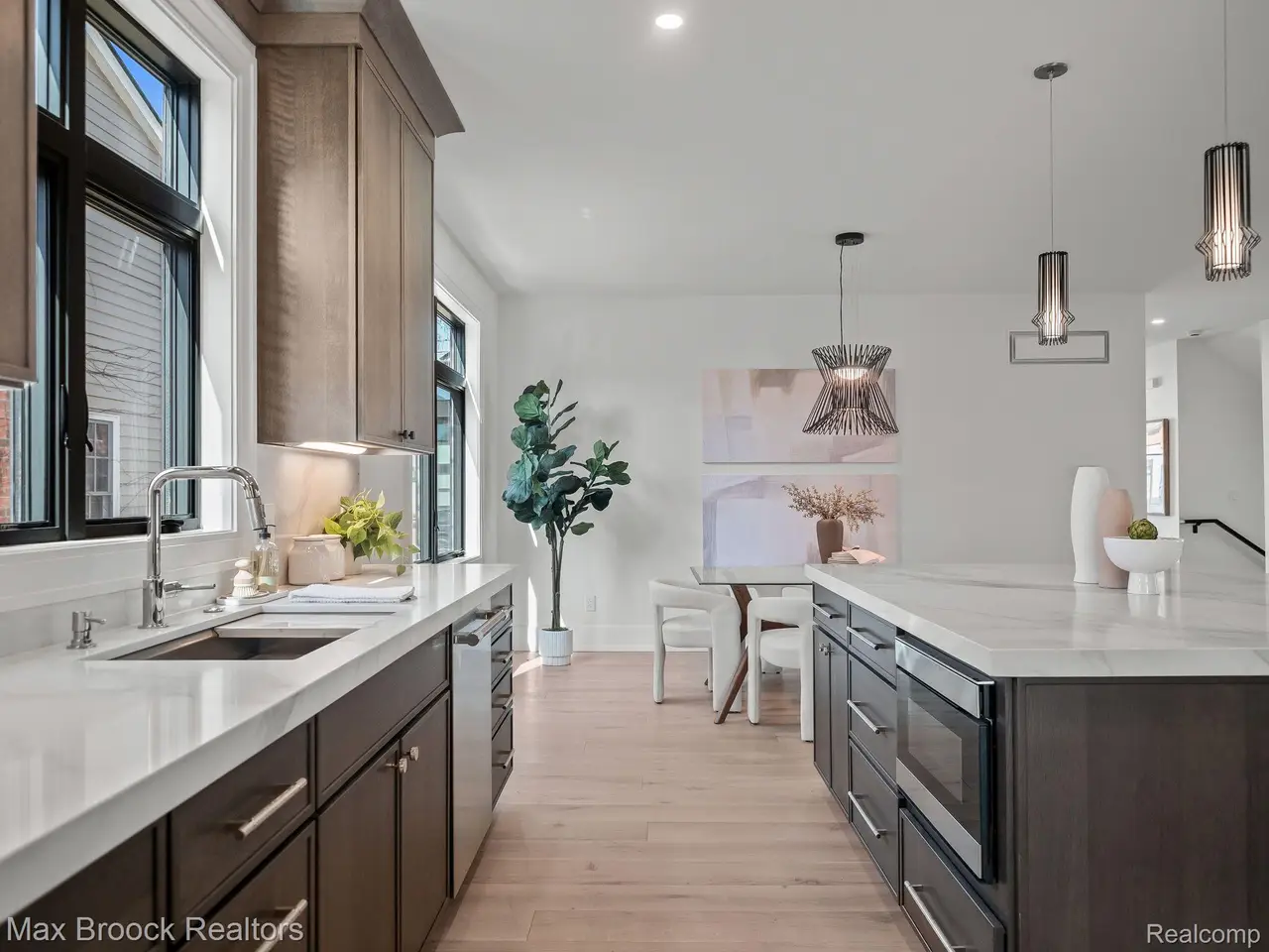 This stunning new construction home is located just steps from downtown Birmingham, a vibrant city filled with entertainment, shopping and fine dining. With 4500 square feet of living space the open floor plan is perfect for families and entertaining. There are 4 levels of finished living space including 5 bedrooms, 5 bathrooms, 2 powder rooms with a 2 car attached garage. The gourmet kitchen is a chef’s delight with premium appliances, quartz counters and a full back splash is open to the dining room and great room including one of 2 custom limestone fireplace surrounds. The den includes a second fireplace with custom glass doors & steel doors for privacy. There is a full walk-in pantry plus custom built in lockers with a bench and storage. Up one level the primary suite is magnificent with a large custom closet, luxurious private bath with a soaking tub, large shower, dual vanities with illuminated mirrors and natural light. The second floor office is spacious and perfect for working from home. There are 2 bedrooms with a jack and jill bath and another full ensuite and laundry room. The 3rd level includes an additional spacious ensuite with plenty of storage. The fully finished lower level offers and additional bedroom, full bath and second full kitchen opens to an entertainment area with a cozy fireplace. This custom built home is the perfect place to call home offering a combination of style, luxury and comfort. No detail has been spared.