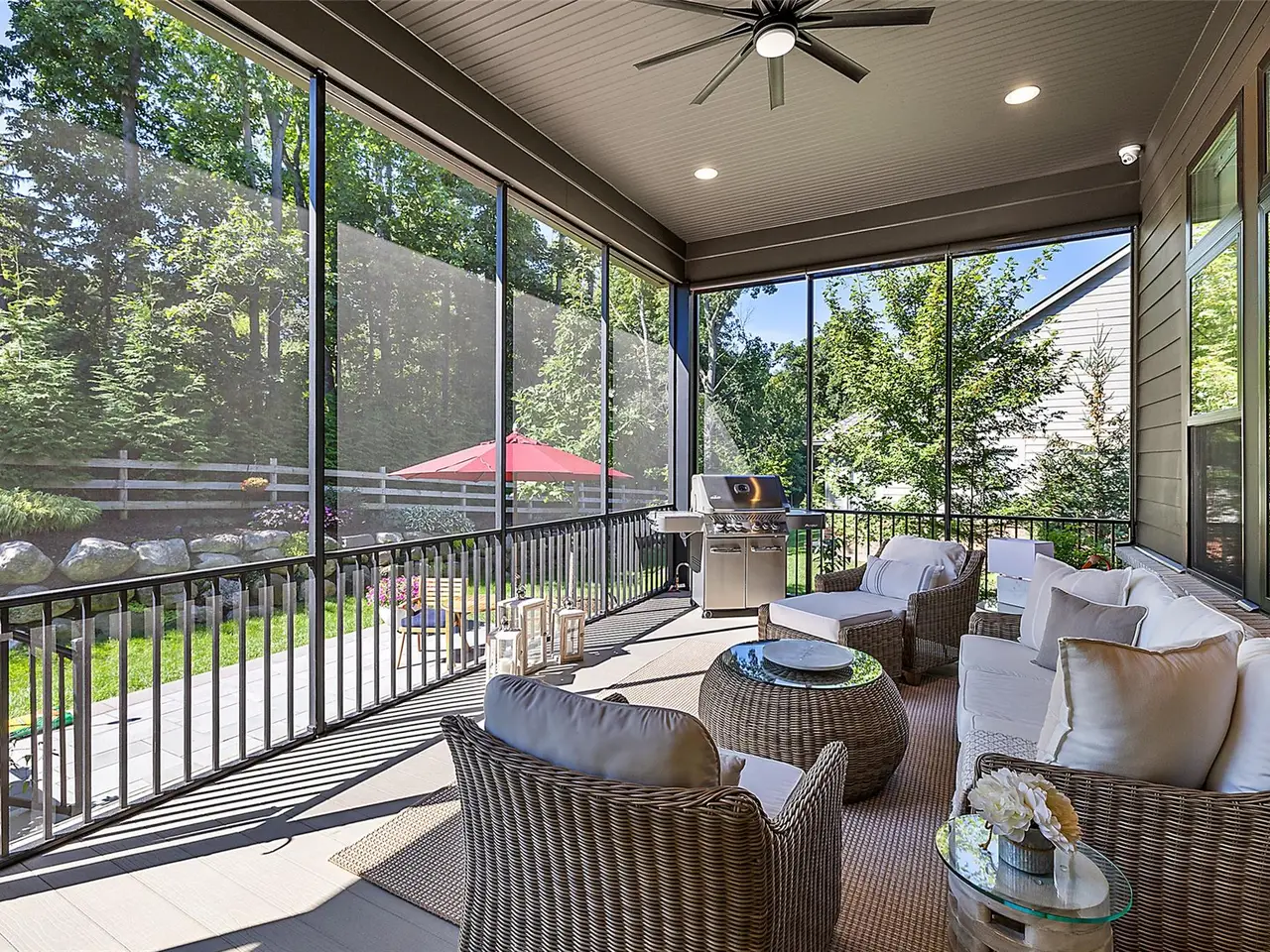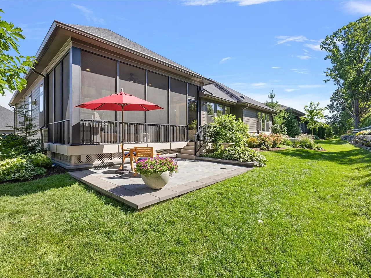 Step into a home where luxury, comfort, and thoughtful design come together in perfect harmony. This stunning residence rivals any HGTV Dream Home, showcasing soaring ceilings and upscale finishes that elevate every room. From the moment you step inside, you'll be captivated by the meticulous attention to detail and the inviting spaces that make you feel instantly at home. The remarkable kitchen features a massive center island, premium stone surfaces, and custom woodwork. Open to the kitchen is the elegant family room, boasting a stunning fireplace and tray ceilings, creating a warm, inviting atmosphere. For those working remotely, a private library provides the perfect quiet space with a sophisticated touch. You’ll want to spend your time in the fabulous three-season room, offering serene views of impeccably landscaped private nature. It steps down onto a beautiful bluestone patio, complete with two gas grilling options, making it ideal for hosting gatherings. The primary suite feels like a hotel getaway, featuring two generous walk-in closets and a spa-like ensuite bathroom with dual vanities, a large walk-in shower, and a separate soaking tub. A lovely second bedroom offers ensuite accommodations with equally impressive amenities. Enjoy main floor living at its finest in this maintenance-free home, designed for comfort without sacrificing luxury. The lower level is ready to suit your lifestyle, featuring 10-foot ceilings, a daylight window, 3-piece plumbing, and distribution of heating for multiple rooms. Additional highlights include a Sonos home sound system, a security system, an epoxy coated garage floor, and a Generac whole-house generator. Located in a sought after community with access to scenic walking paths, this exceptional home offers not just a place to live, but a lifestyle to love. This is a rare opportunity to own a home of this caliber, beautifully designed, meticulously maintained, and truly move-in ready. Schedule your private showing today!