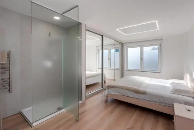 Floor-to-ceiling FENSTER SHUCO windows with ocean views