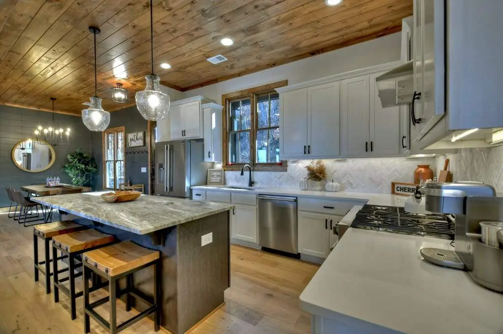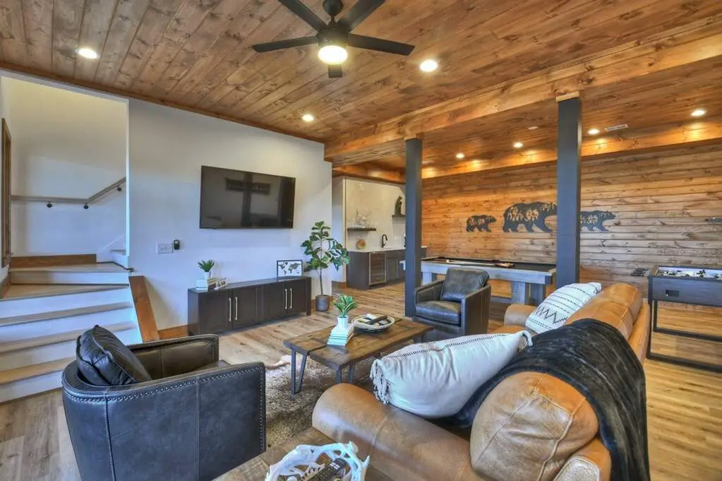 As seen on HGTV - Luxury mountain escape with STUNNING, unobstructed SUNSET VIEWS overlooking the Cohutta Wilderness! Upscale gated community with all paved roads, underground power and high speed internet. Professionally designed with high-end finishes and upgrades throughout, with an open concept floor plan that features vaulted ceilings and floor-to-ceiling windows to take in the incredible long range views. Meticulously maintained 4 bedroom, 3 bath plus additional sleeping loft with wow factor views from every room! Well-appointed chefs kitchen with separate dining area for large family gatherings. Plenty of outdoor entertaining areas including oversized covered porch off great room featuring a must-have outdoor fireplace and dining area overlooking one of the best views in Blue Ridge!. Terrace level features 2 additional guest suites, wet bar, game room and additional covered porch area with hot tub. Whole house water filtration system. Top of the mountain with plenty of parking, perfect for luxury rental program, full time living or much needed mountain getaway. Scenic drive conveniently located to historic downtown Blue Ridge, as well as, hiking, trophy trout fishing, Lake Blue Ridge, horse back riding, shopping, dining and more!