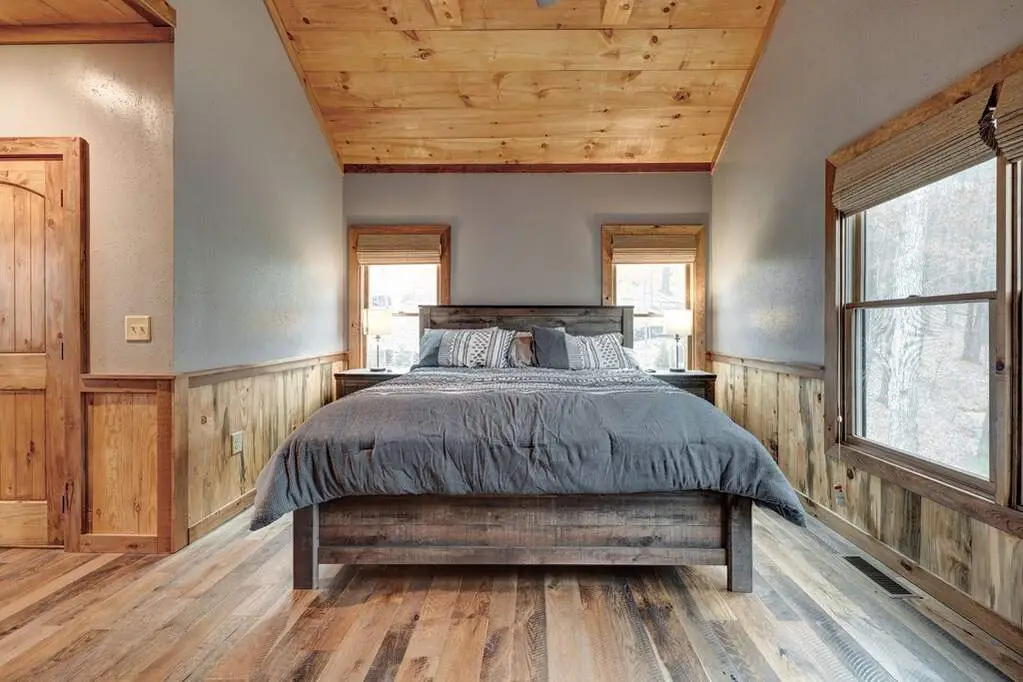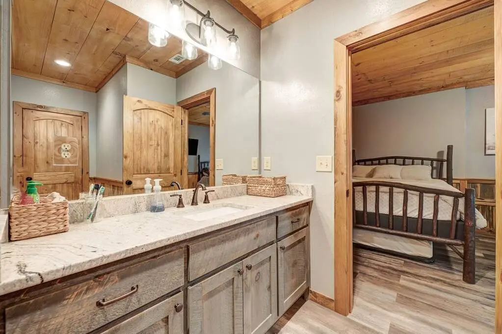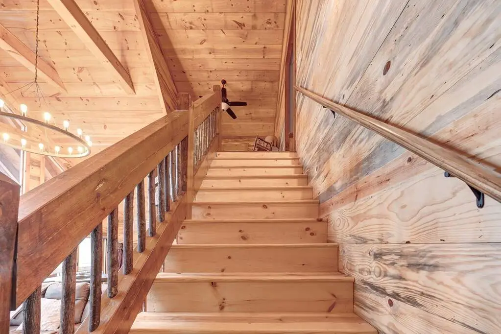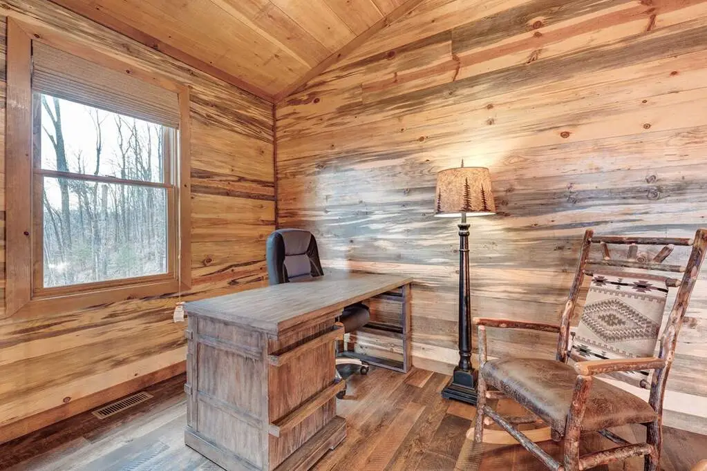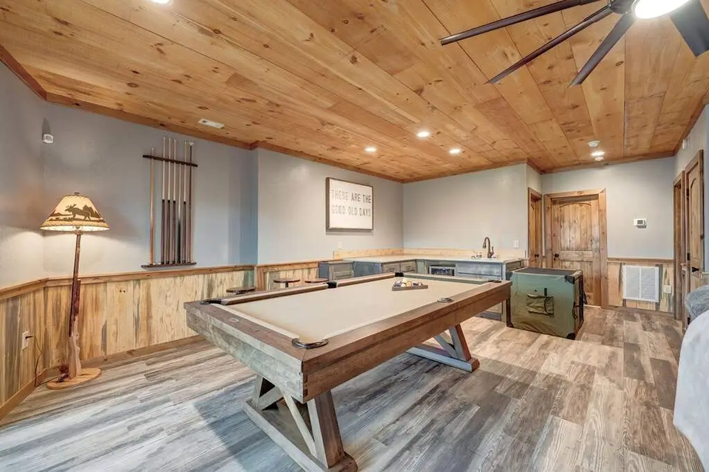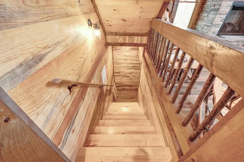 This stunning prow-front cabin features a window wall that brings the outdoors inside. The cabin offers a spacious Garage and multiple outdoor living areas, including a Party Porch with a wood-burning fireplace, a Hot Tub porch, wraparound decks, and a generator. The direct access to Lake Blue Ridge is ideal for kayaking and paddle boarding. The great room boasts a majestic stone fireplace with a cedar mantel that seamlessly flows into the dining area: the kitchen has granite countertops, custom cabinetry, and stainless-steel appliances. The cabin showcases beautiful "Blue Buggy" tongue-and-groove (T&G) interior walls, bark accents, tiled showers, and granite countertops. The terrace level includes a family room featuring a wet bar, pool table, and rocked fireplace. Each level has a spacious bedroom with a full bath and an additional half bath on the main floor. The laundry is conveniently located on the main level, and ample storage space ensures you have room for all your gear and belongings. The cabin is situated in an established neighborhood with all-paved access, this cabin is just a short walk from the Necowa Cove community access. You can take advantage of the nearby Aska Trail System for hiking, mountain biking, and immersing yourself in nature while only ten minutes away from downtown Blue Ridge. Public boat launch and the Toccoa River are just minutes away. Fully furnished and offering seasonal views of the mountains and shimmering light off of the lake, this cabin is the perfect getaway. Short-term rentals are allowed.