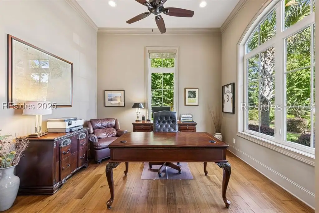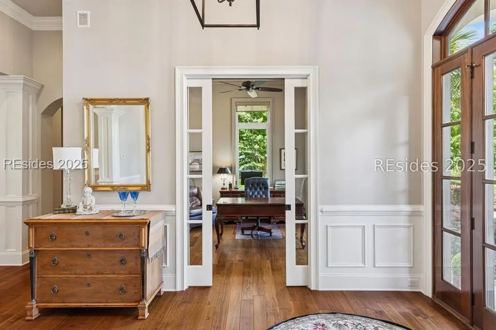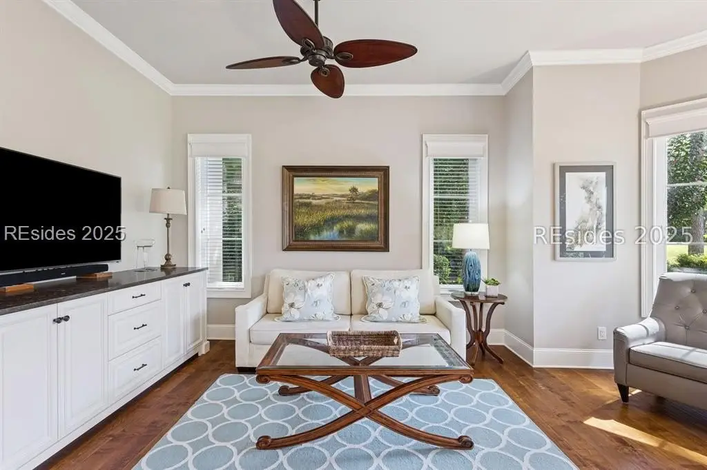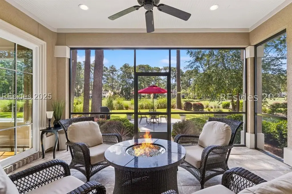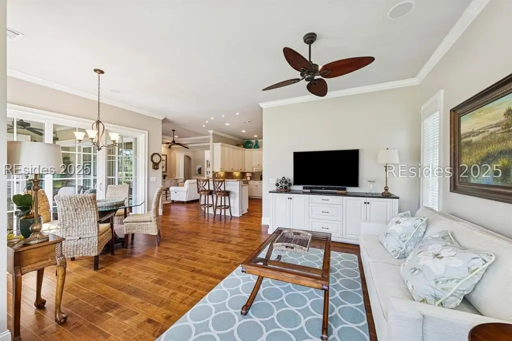 Built in 2015, this 2,800 sq ft home features 3 bedrooms, 2.5 bathrooms, and sits on a large homesite with plenty of room for a private pool. Enjoy beautiful golf-to-lagoon views from your backyard on the 2nd hole of Belfair's West Course. Inside, the open concept floor plan includes spacious living and dining areas filled with natural light. A screened porch with a wide pocket door slider extends your living space outdoors - perfect for entertaining or relaxing year-round. The home also features a multizone HVAC system, providing efficient climate control and comfort throughout. The unfinished bonus room over the 2.5 car garage offers excellent walk-in storage and can easily be finished for nearly 390 sq ft of additional heated living space. This property is ideal for buyers seeking a newer home in Belfair with golf course views, room to expand, and a private setting. Community amenities include two Tom Fazio championship courses, fitness center, tennis, pickleball, resort-style pools, walking trails, a great location within Bluffton and minutes to Hilton Head Island.