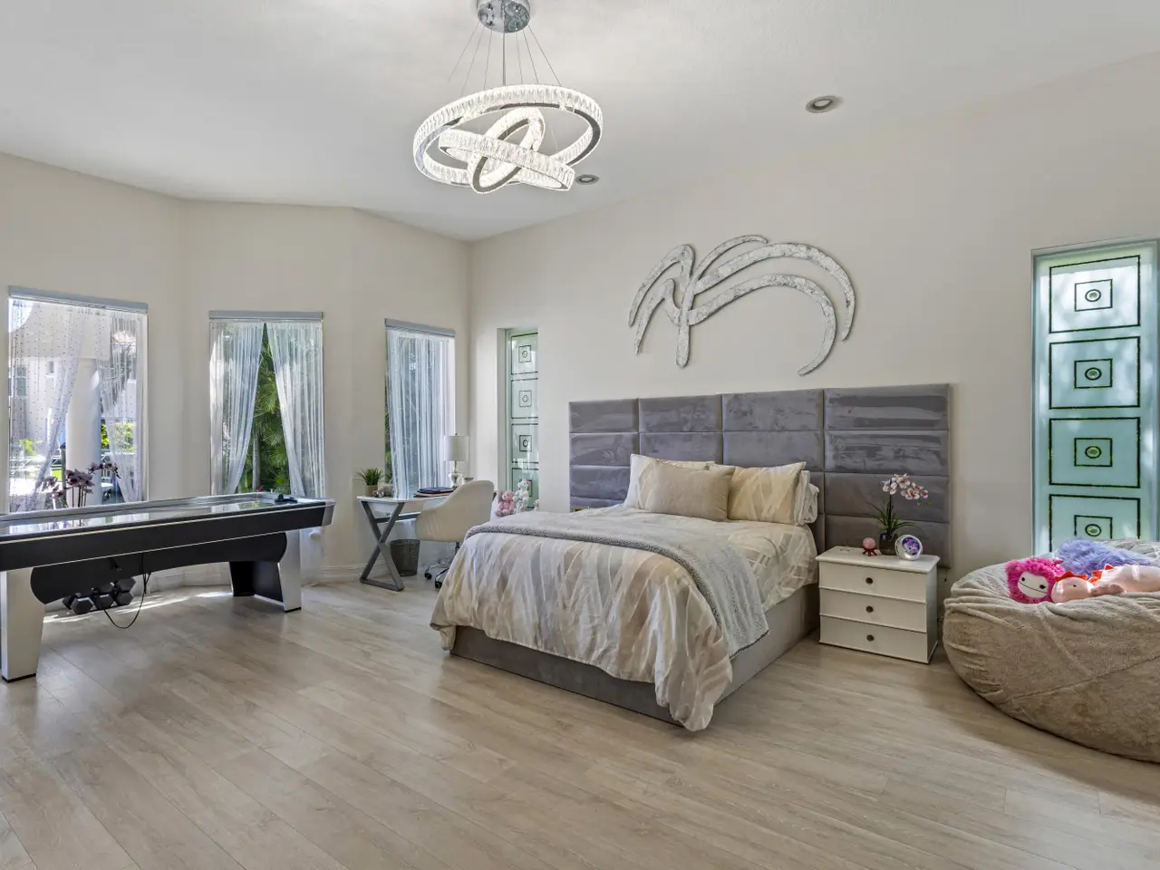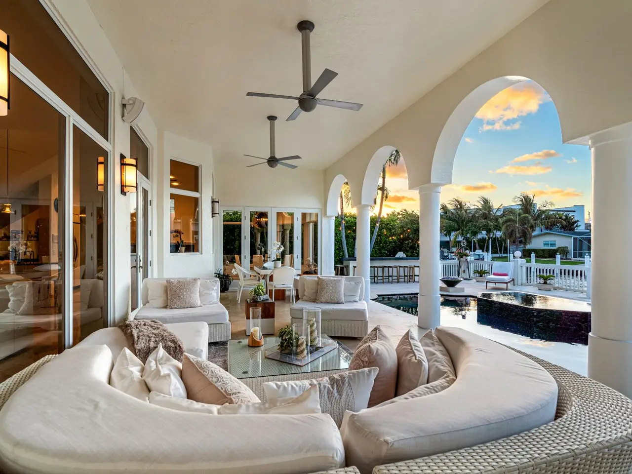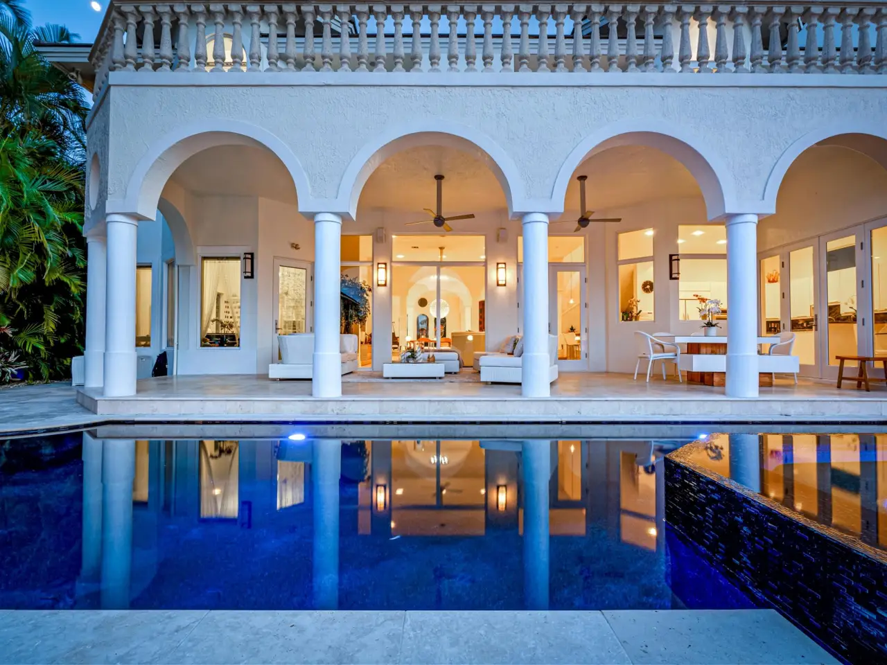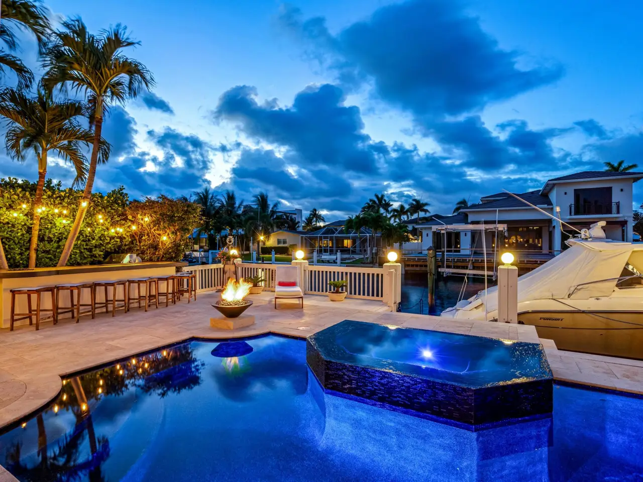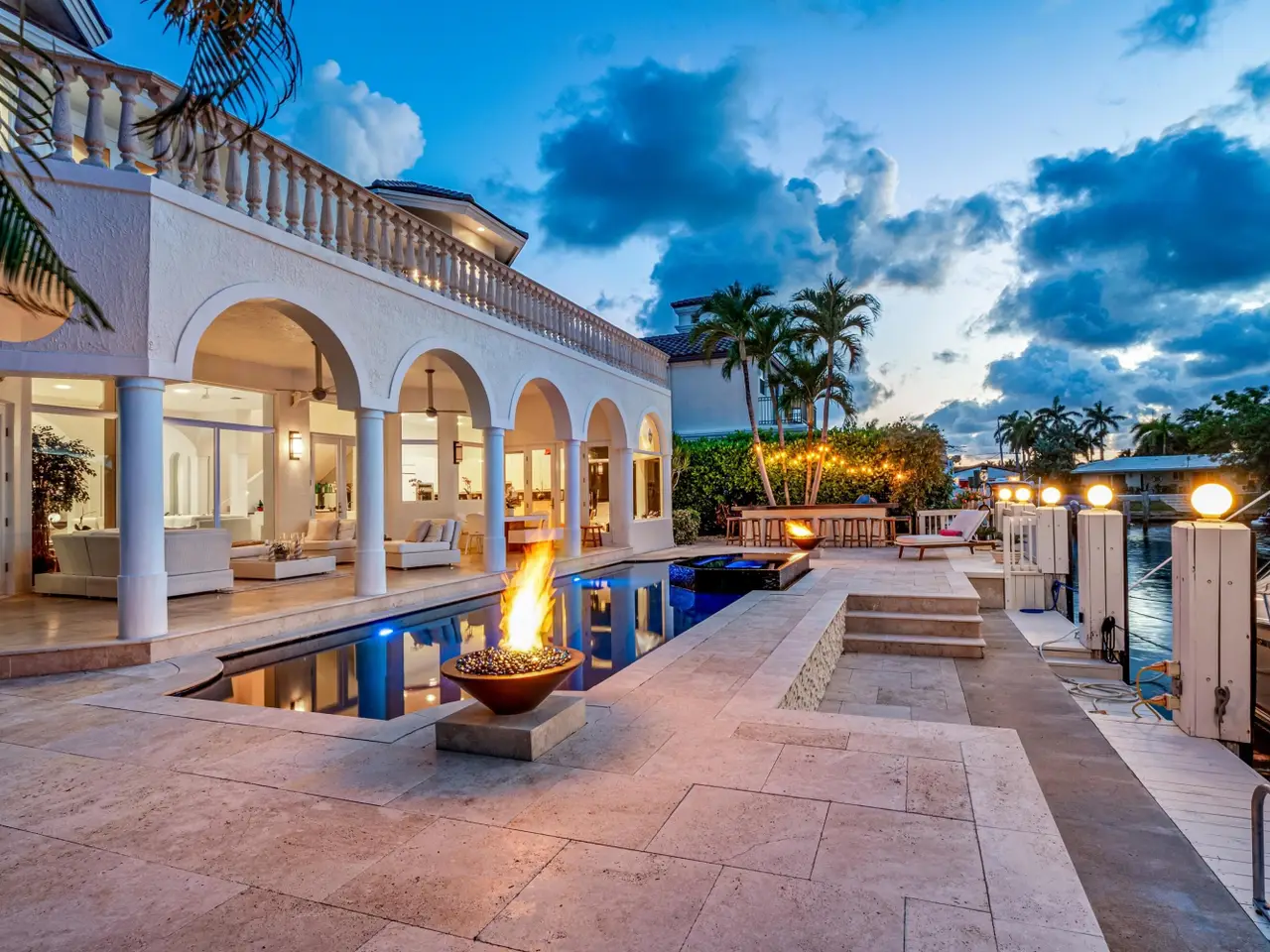 Luxe Boca Raton deepwater estate in the desirable Lake Rogers community fronts 80 feet on a deep-water canal with a dock offering easy ocean access, desirable for boaters. Interiors are peerlessly defined by grand architectural adornments, and the magnificent outdoor entertaining area centers on a sun-splashed pool with a spill-over spa bounded by an expansive patio with a wet bar and barbeque area.