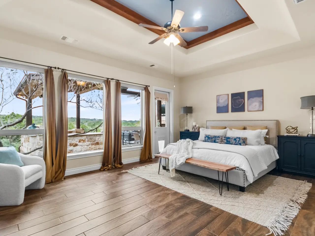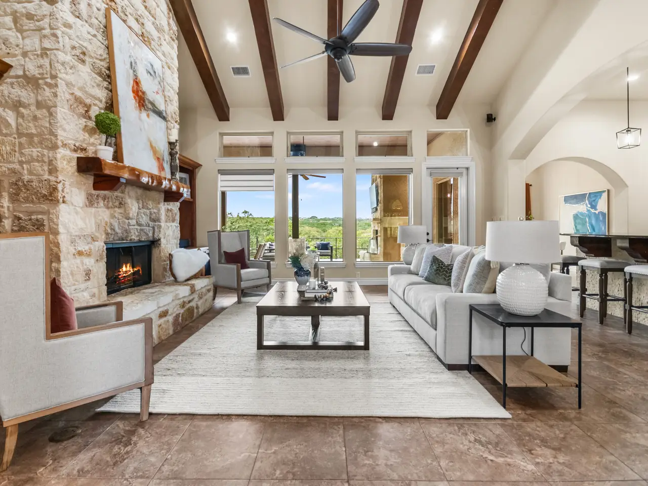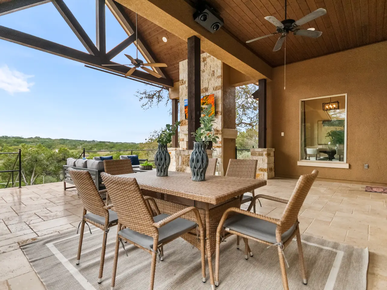 Experience all that Cordillera Ranch has to offer and enjoy the beautiful views at this exquisite one story ranch style home located close to the Guadalupe River Park. This property sits on just over 2 acres and has 4 nice size bedrooms and 2.5 bathrooms and a 3 car garage. As you walk in the home you are greeted with a wall of windows to take in the spectacular hill country views, a floor to ceiling stone fireplace with built in cabinets on each side, central vacuum, a large entertainer's kitchen with gas cooking, double ovens, an island, and eat in bar top. The enlarged outdoor covered patio is impressive. Equipped with an outdoor fireplace, misting system, designated kitchen for grilling, and plenty of room to create an additional outdoor cozy living space. The location of this property is equipped with city water and sewer. Come and make this house your home.