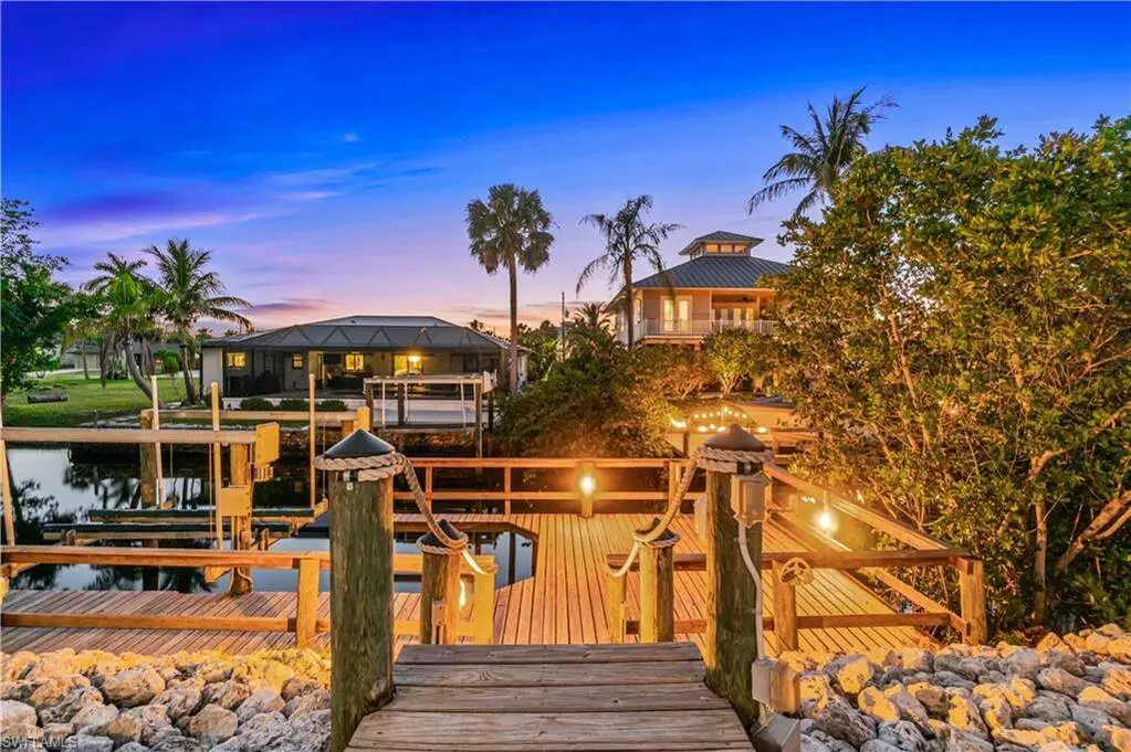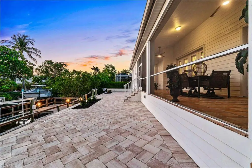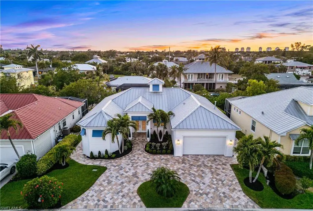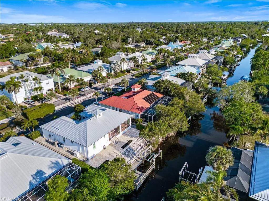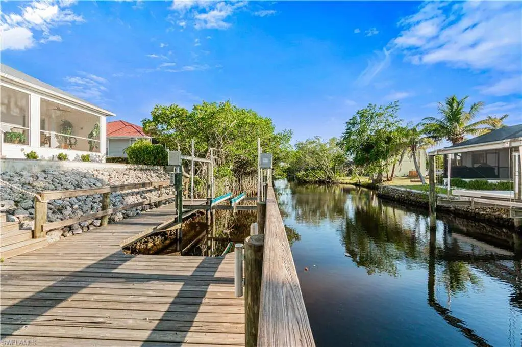2014 BUILT GULF-ACCESS HOME-- HIGH & DRY WITH NO FLOODING IN ANY STORM, EVER! OFFERS INCREDIBLY RARE PEACE OF MIND DUE TO THE UNIQUELY HIGH ELEVATION, FLOOD ZONE X, POURED CONCRETE & METAL FRAMING CONSTRUCTION, ALL IMPACT GLASS WINDOWS, 500-GALLON BURIED PROPANE TANK, 2023 WHOLE HOUSE GENERATOR & 2014 METAL ROOF! This waterfront & coastal contemporary home is perfectly located only a 10-minute drive to the beach in a private, gated enclave of 40 "Olde Florida" style homes with very low HOA fees that include lawncare for easy maintenance! Walk right onto your boat in your backyard and be to the Gulf of Mexico in 35-45 minutes via the Imperial River (boasts an extended boat dock/ lift with new lift motors in 2023!) Plenty of room for the pool of your dreams (see attached renderings)*! Coveted Western exposure grants gorgeous natural light, breathtaking sunsets & prime sun over your future pool. This single-story home has a fantastic open floor plan with soaring 10-14 ft. ceilings & a sun-dappled cupola with transom windows. With gorgeous professional landscaping, 24" porcelain tile flooring throughout (no carpet), plantation shutters, solid core doors, stunning contemporary finishes & high-end furnishings negotiable separately, this immaculately maintained & pristine home is fully move-in-ready. The chef's kitchen offers solid maple cabinetry, granite counter tops & backsplash, a spacious pantry & Thermador Pro series stainless steel appliances including double wall ovens & a 6-burner gas cooktop. Perfect for waterfront entertainment with a 33' x 9' screened lanai plus a 23 x 15' pavered patio area beyond-pre-plumbed for an outdoor gas kitchen! Prime location near thriving downtown Bonita Springs with a brand-new food truck park, Sugarshack live music restaurant, many locally owned restaurants, festivals/events & new library. 10 minutes to SWFL's best beaches, 5 minutes to the Promenade and Coconut Point with dozens of dining options & across the street from a public golf course (Bonita Fairways).