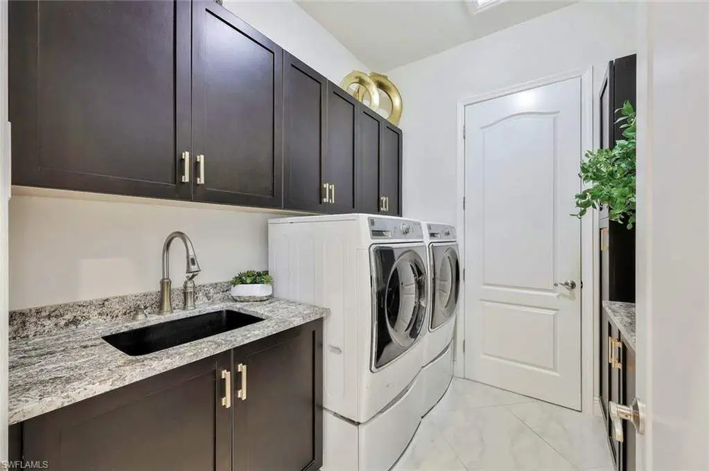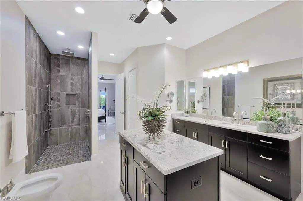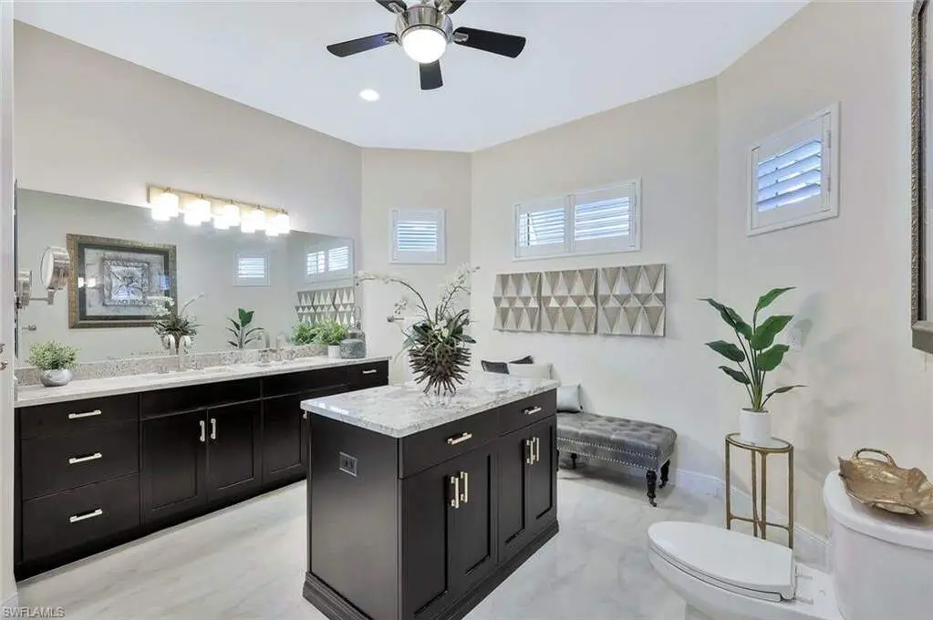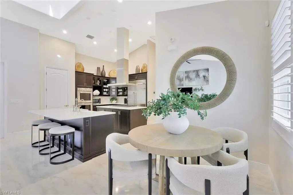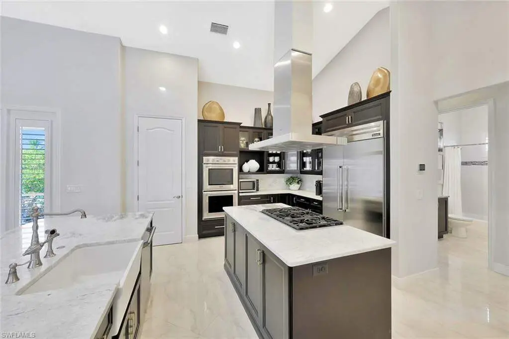 2014 BUILT GULF-ACCESS HOME-- HIGH & DRY WITH NO FLOODING IN ANY STORM, EVER! OFFERS INCREDIBLY RARE PEACE OF MIND DUE TO THE UNIQUELY HIGH ELEVATION, FLOOD ZONE X, POURED CONCRETE & METAL FRAMING CONSTRUCTION, ALL IMPACT GLASS WINDOWS, 500-GALLON BURIED PROPANE TANK, 2023 WHOLE HOUSE GENERATOR & 2014 METAL ROOF! This waterfront & coastal contemporary home is perfectly located only a 10-minute drive to the beach in a private, gated enclave of 40 "Olde Florida" style homes with very low HOA fees that include lawncare for easy maintenance! Walk right onto your boat in your backyard and be to the Gulf of Mexico in 35-45 minutes via the Imperial River (boasts an extended boat dock/ lift with new lift motors in 2023!) Plenty of room for the pool of your dreams (see attached renderings)*! Coveted Western exposure grants gorgeous natural light, breathtaking sunsets & prime sun over your future pool. This single-story home has a fantastic open floor plan with soaring 10-14 ft. ceilings & a sun-dappled cupola with transom windows. With gorgeous professional landscaping, 24" porcelain tile flooring throughout (no carpet), plantation shutters, solid core doors, stunning contemporary finishes & high-end furnishings negotiable separately, this immaculately maintained & pristine home is fully move-in-ready. The chef's kitchen offers solid maple cabinetry, granite counter tops & backsplash, a spacious pantry & Thermador Pro series stainless steel appliances including double wall ovens & a 6-burner gas cooktop. Perfect for waterfront entertainment with a 33' x 9' screened lanai plus a 23 x 15' pavered patio area beyond-pre-plumbed for an outdoor gas kitchen! Prime location near thriving downtown Bonita Springs with a brand-new food truck park, Sugarshack live music restaurant, many locally owned restaurants, festivals/events & new library. 10 minutes to SWFL's best beaches, 5 minutes to the Promenade and Coconut Point with dozens of dining options & across the street from a public golf course (Bonita Fairways).
