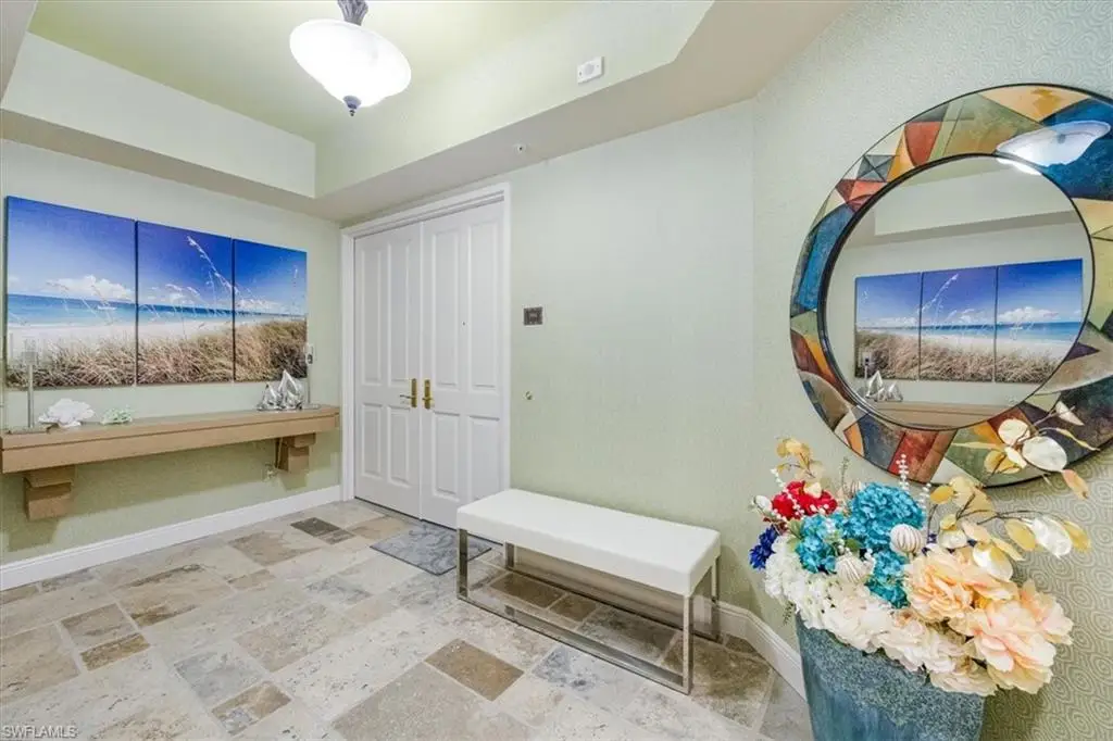 This highly-desirable 3rd-floor unit is in impeccable condition and boasts awe-inspiring sunset views of the Gulf, sunrise views to the East and Estero Bay. With a spacious living area of just over 3,200 square feet, this residence comprises three bedrooms and 3.5 bathrooms. Numerous upgrades can be found throughout, including stunning travertine and wood flooring, generous closet space, a screen enclosed lanai plus a balcony, multiple elevator access points, electric roll down storm shutters, and much more. The meticulously designed kitchen is equipped with upgraded cabinetry and adorned with granite countertops. The primary bedroom features two closets, oversized bath with shower, whirlpool tub, closed of toilet room, and lanai access. Palermo offers coveted amenities such as a state-of-the-art fitness center, welcoming social and gathering spaces, a resort-style pool with a spa, two large guest suites, billiards, a movie theater, additional unit owner storage, and more! The Colony itself offers an array of outstanding amenities, including a championship golf course, a Country Club, tennis courts, a 34-acre beach park, pickleball, bocce, a canoe and kayak park, and the Bay Club.