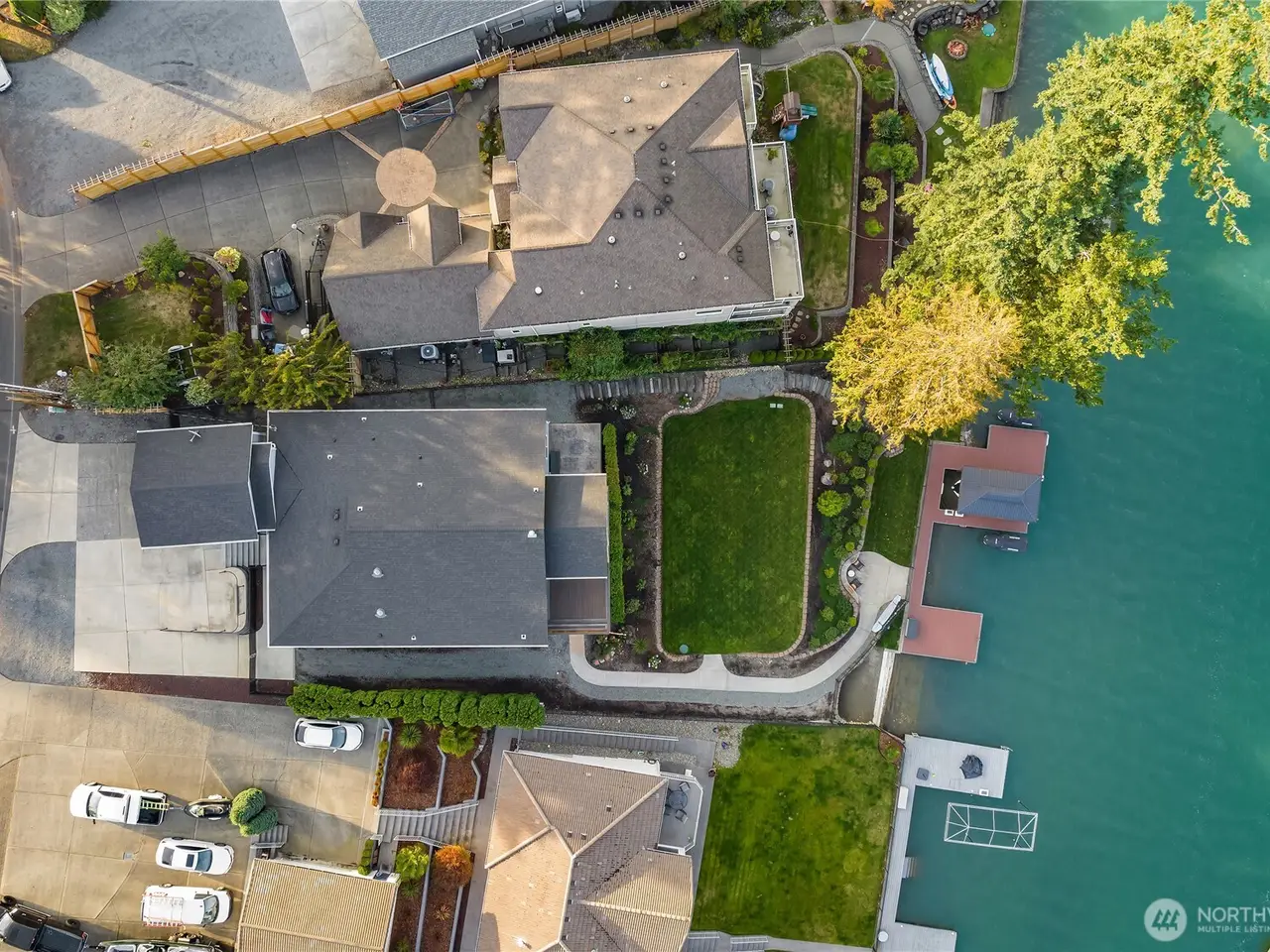 95ft of low-bank eastern-facing Lake Tapps Waterfront. Open concept living w/thoughtfully designed living spaces. Vaulted & trey ceilings w/inset lighting. Gourmet chef's kitchen w/Stainless Steel appliances, granite counters, oversized breakfast bar, Lg walk-in pantry, formal dining space. Main floor living w/Primary suite, 2nd bdrm en-suite & office. Optional MIL: Media/game rm downstairs w/2 add'l bdrms, 2nd kitchen, 2nd laundry & covered patio. At the shores of Lake Tapps: no-bank sand bar, swim area, fire pit & RARE Lg dual dock w/covered boat area & 2 jet ski areas & room for all of the summertime toys. Year-round covered outdoor space/BBQ area. RV/Boat Parking, A/C, Sprkler Sys, fully fenced & terraced down to the water's edge