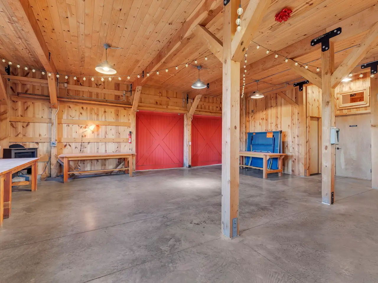 Fienile con travi e pilastri / spazio per eventi perfetto per ospitare cene dalla fattoria alla tavola, matrimoni e altro ancora