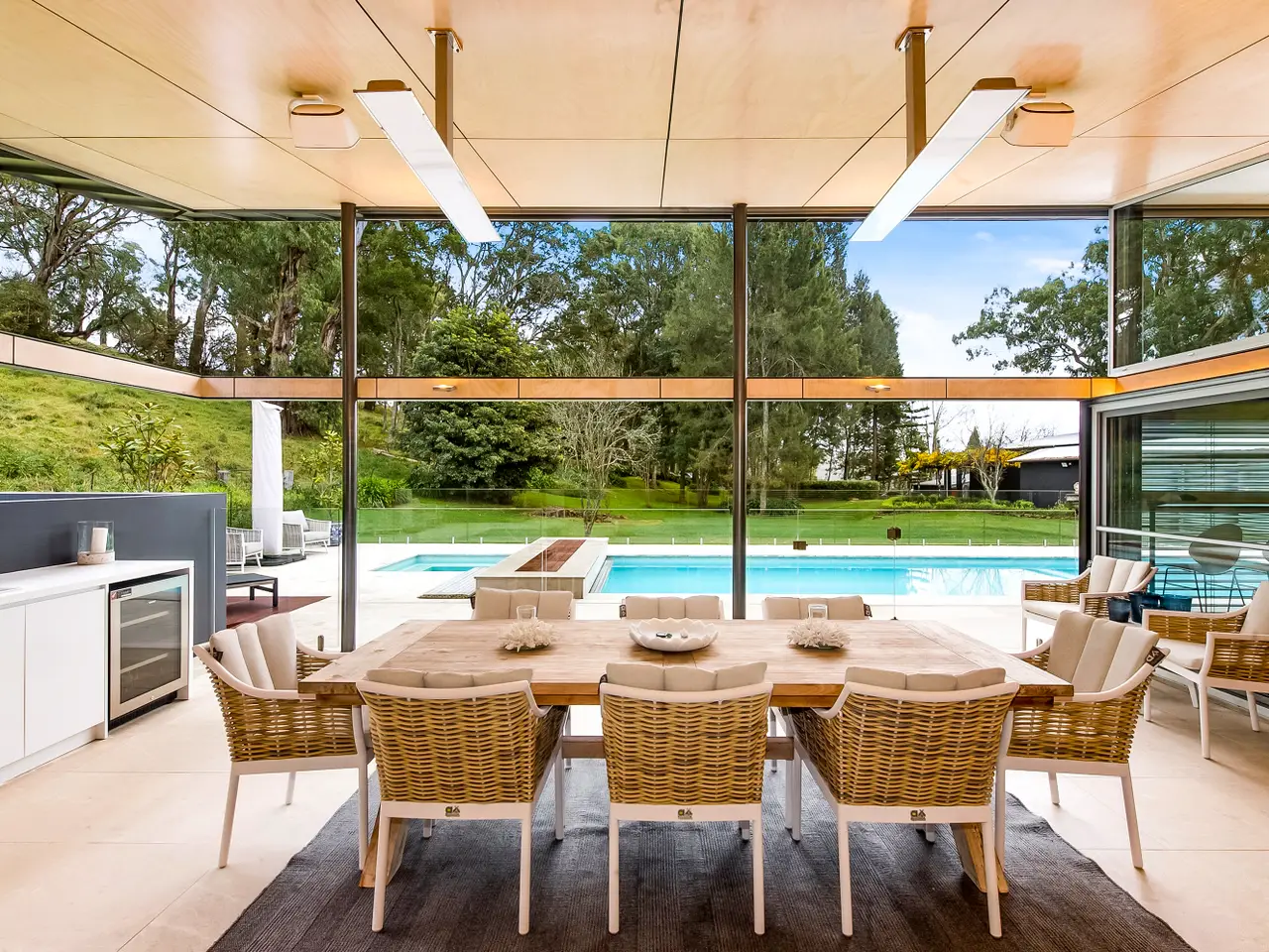 Created by Australia's most internationally renowned architect, Glenn Murcutt, 'Beacon Hill' is a modernist showcase of light, warmth and spectacular design. Completely renovated and updated in recent years, this incredible 100-acre property situated on the most prime piece of real estate between Bowral and Mittagong, has views to the Blue Mountains and sweeping countryside vistas. Named for a World War Two radio beacon that once stood on its highest point (which is also an excellent future house site if the property were to be further developed, subject to approval) 'Beacon Hill' offers luxurious family living on an exceptionally beautiful estate, just moments to the district's best restaurants and schools. The home has been designed for north-facing living and light and includes luxuries such as a family-sized sauna, resort-style heated pool and spa; open-plan living areas including a gym/play area and a separately located large office adjacent to the house. Situated along the tree-lined driveway, a modernist stables complex with storage area and six car under cover parking plus grass arena and electric horse fencing. The home offers beautifully improved pastures and paddocks and currently agists 40 head of cattle and has state-of-the-art cattle facilities and infrastructure plus several dams with good water security. For further information or to arrange an inspection, please contact Debbie at 0400 339 449 or David at 0438 846 199. Highlights of this extraordinary offering include: - New lighting and electronic front gate - New landscaped driveway - New limestone flooring; garage refurbishment (can be used as a room if desired) - Additional 3 car carport in front of the house - New lighting throughout - Spectacular 'showcase' cellar in the dining room - New kitchen with Miele appliances; newly created butler's pantry - New carpet and floorboards throughout - Underfloor heating throughout home - New marble bathrooms - New outdoor kitchen with drinks fridge - Wood fires including a Murcutt signature feature fireplace in main living - Newly planted row of conifers along front boundary to road - Double glazing; electronic concealed blinds Glenn Murcutt's stunning designs have helped to create Australia's modern architectural vernacular, and 'Beacon Hill' remains one of his finest.