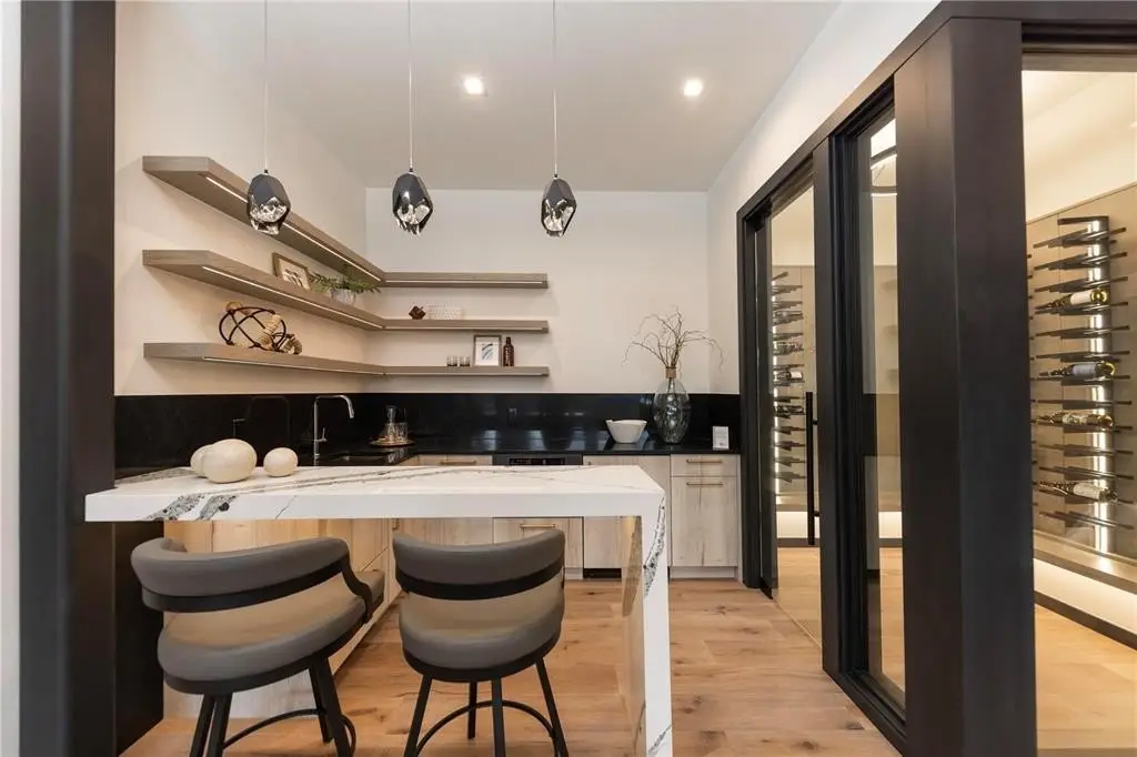 Welcome to this stunning new Allen/Guerra designed masterpiece nestled amidst the serene grandeur of the mountains and seamlessly integrated into the picturesque landscape of the prestigious, Jack Nicklaus signature Breckenridge Golf Course. This architectural treasure seamlessly blends mountain modern design with the picturesque beauty of its surroundings, offering an unparalleled living experience for those seeking a luxurious retreat. Large windows strategically placed throughout the home invite abundant natural light to flood the interior spaces, blurring the boundaries between indoors and outdoors and providing panoramic views of the protected mountain corridor. Step inside, and you are greeted by an open-concept layout that emphasizes spaciousness and fluidity. The interior design showcases custom steel beam work, stacked stone, unique sports bar, stunning glass wine room and multi-level outdoor living areas for everyone to enjoy.