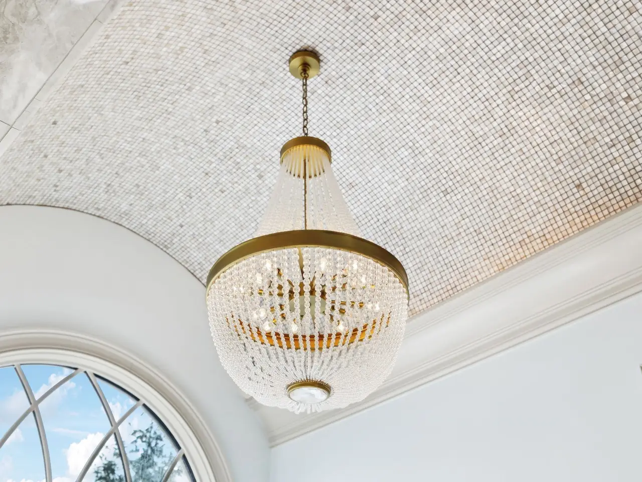 Spa-like bath with Mother of Pearl ceiling and footed tub