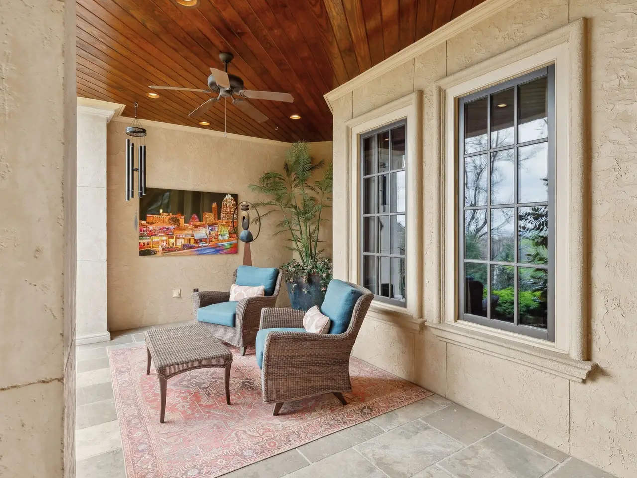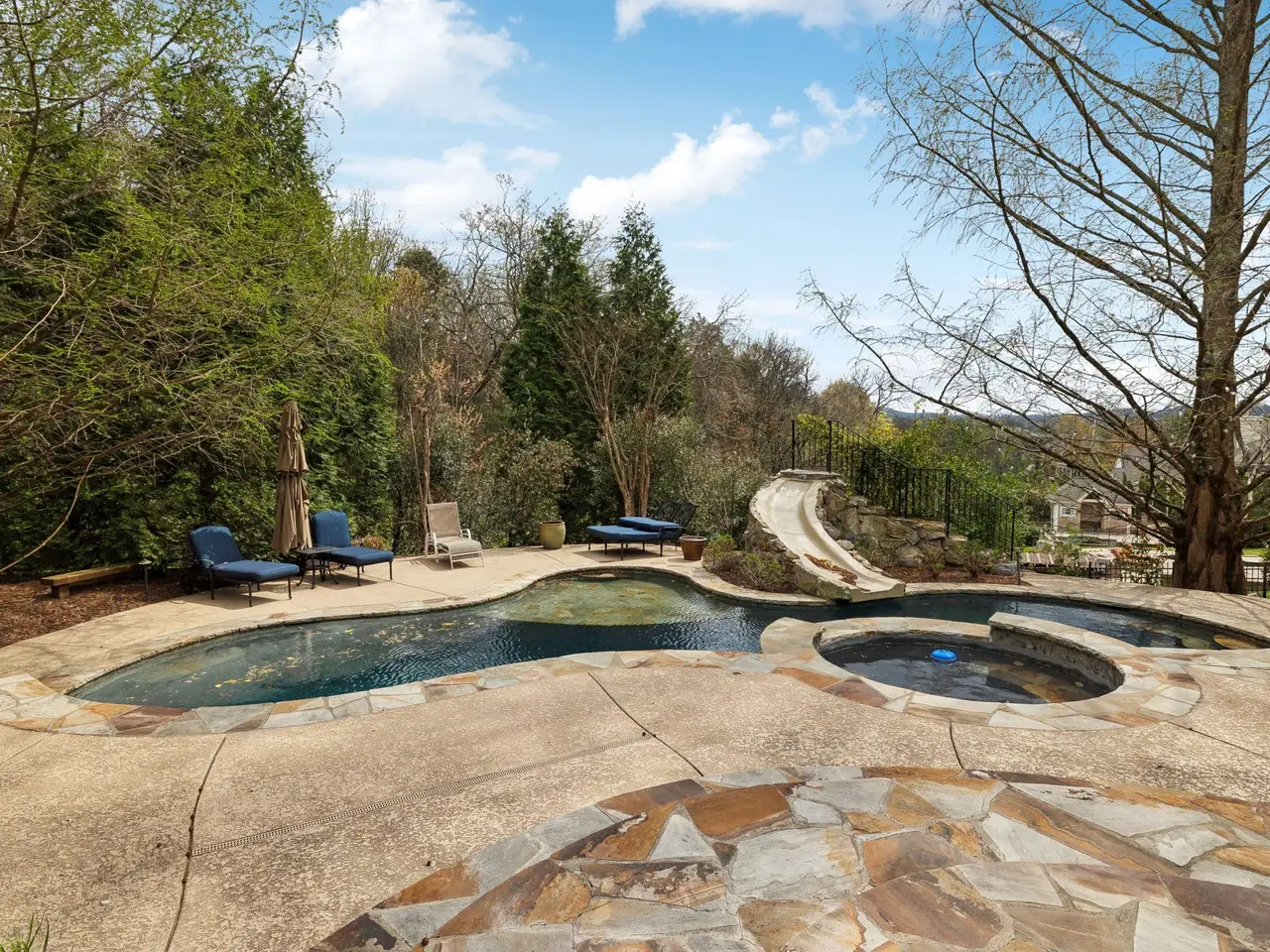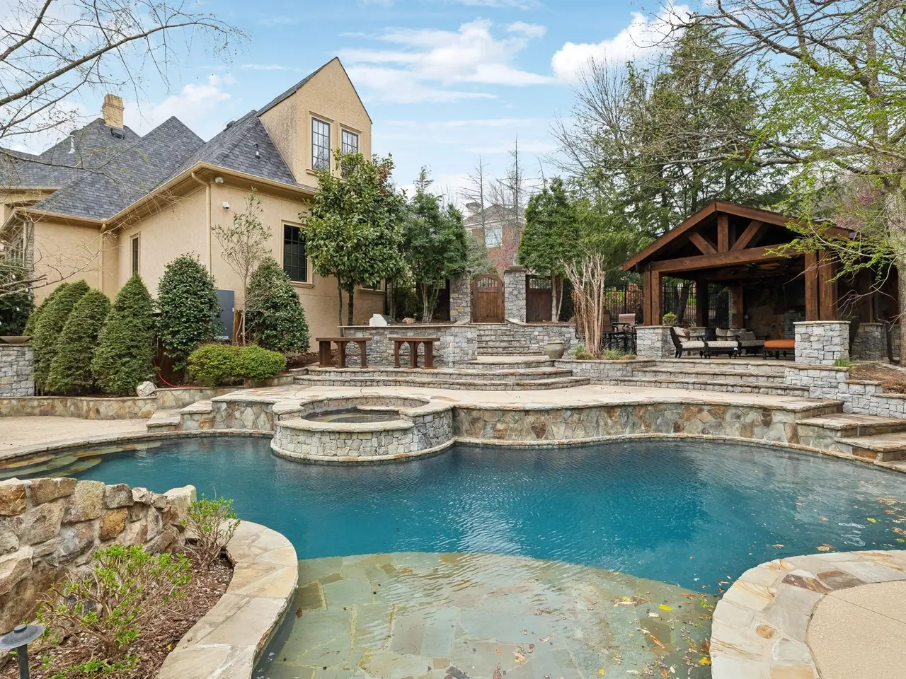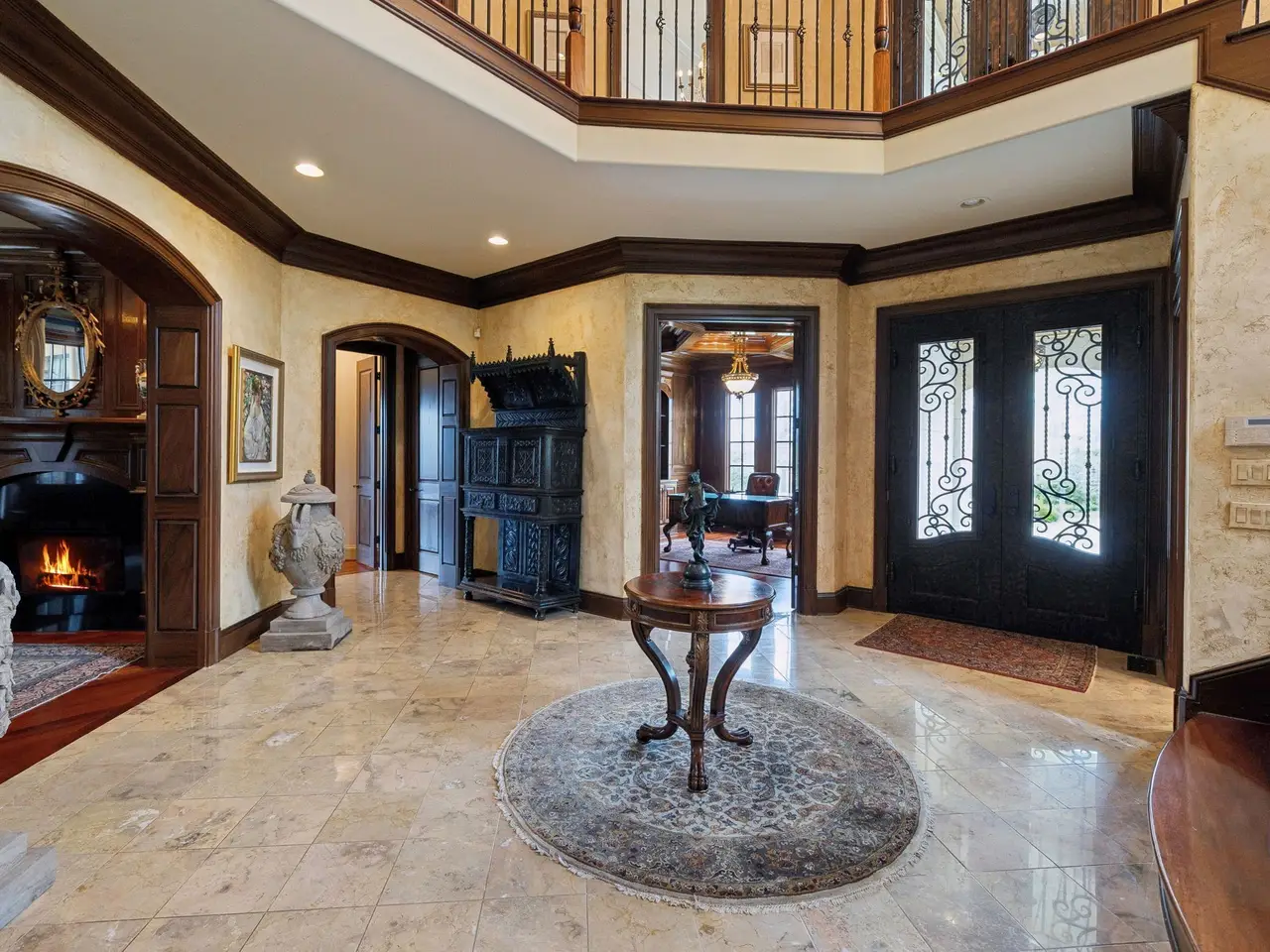 Nestled within the exclusive, gated enclave of Woodward Hills, this masterfully designed estate offers an unparalleled blend of architectural artistry and modern luxury. This residence is a true masterpiece, featuring hand-hewn limestone from the historic Avon Conley Farm in Woodbury, TN. Every inch of this home exudes elegance, with interiors curated by nationally renowned artisans, Faux Design and Jay Bernard, whose exceptional work brings depth and sophistication to every space. The primary suite ceiling transforms from a serene daytime sky into a celestial nightscape, while the intricately painted dome above the grand spiral staircase creates a breathtaking focal point in the foyer. Designed for both entertaining and relaxation, this home boasts an abundance of indoor and outdoor living spaces. The grand entry foyer leads to a chef's kitchen outfitted with premium stainless-steel appliances, while five fireplaces throughout add warmth and grandeur. The primary suite on the main level is a true retreat, featuring a spa-like bath with a Mother of Pearl ceiling, a footed tub, and exquisite tilework. Upstairs, a state-of-the-art media room seamlessly connects to the billiards lounge via a sophisticated wet bar, complete with a beverage center, microwave, and dishwasher. The third floor offers a private exercise studio, ensuring convenience and luxury at every level. Stepping outside, the estate transforms into a private resort-style oasis. A covered porch and a stunning pool with a custom-built slide and spa create the perfect setting for outdoor enjoyment. The outdoor kitchen, featuring a built-in gas grill, is ideal for al fresco dining, while the pool house with its own fireplace invites cozy gatherings under the stars. Every detail of this exceptional residence has been crafted to offer a harmonious blend of sophistication, comfort, and exclusivity. An extraordinary opportunity to own a home where art, design, and luxury living converge in perfect balance.
