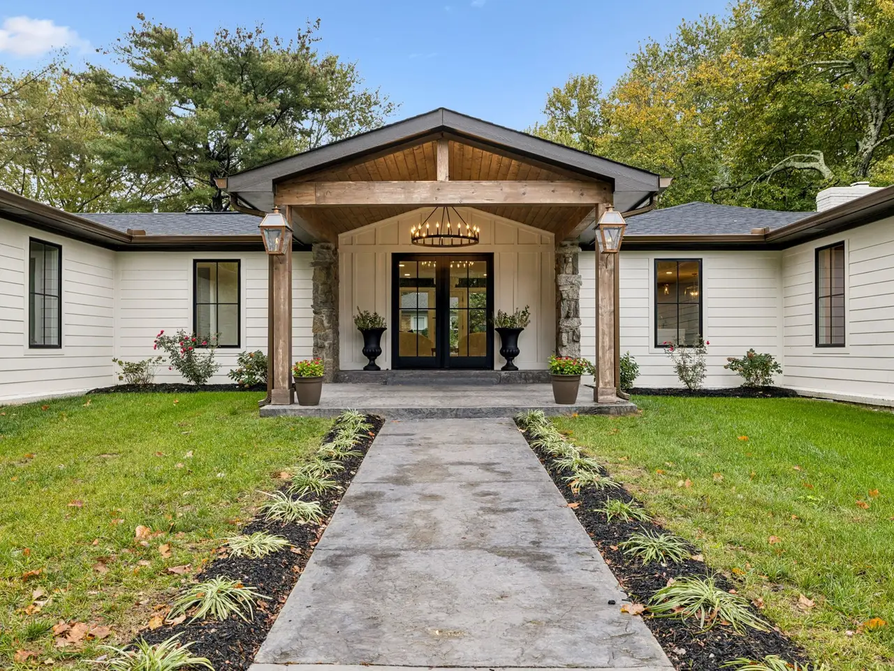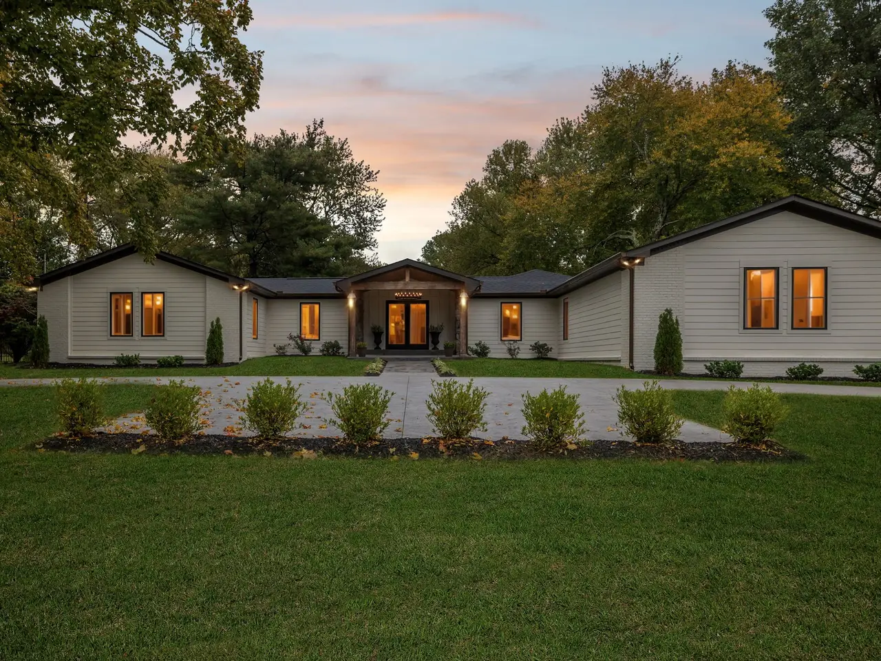 Discover this beautifully renovated one-level home, perfectly positioned on a private 1-acre corner lot at the end of a quiet cul-de-sac in the heart of Brentwood's established Brenthaven community. Every detail has been thoughtfully updated, offering a move-in ready retreat just minutes from I-65 and Williamson County's top-rated schools--zoned for Lipscomb Elementary, Brentwood Middle, and Brentwood High--as well as shopping, dining, and everyday conveniences. Inside, a versatile layout features two primary bedroom suites, each complete with walk-in closets and luxurious full baths showcasing double vanities, stand-alone soaking tubs, and tile showers with glass surrounds--ideal for multi-generational living or private guest accommodations. The comprehensive renovation includes a new roof, windows, gutters, and circular driveway, ensuring peace of mind and curb appeal. The fully fenced backyard offers a charming patio, storage shed, and ample space for a future pool. Designed for comfortable living, the home boasts multiple living and dining areas with a seamless flow from the formal living/sitting room to the kitchen, dining room, and vaulted den. The chef's kitchen impresses with a large center island, abundant cabinetry, and two dishwashers, plus a Viking refrigerator, Viking double oven and gas range, pot filler, under mount microwave, and beverage center. The vaulted den features a cozy fireplace with a full-height stone surround, and nearby you'll find a convenient powder bath and laundry room off the secondary dining/sitting area. Truly an exceptional opportunity for upgraded one-level living in one of Brentwood's most desirable locations!
