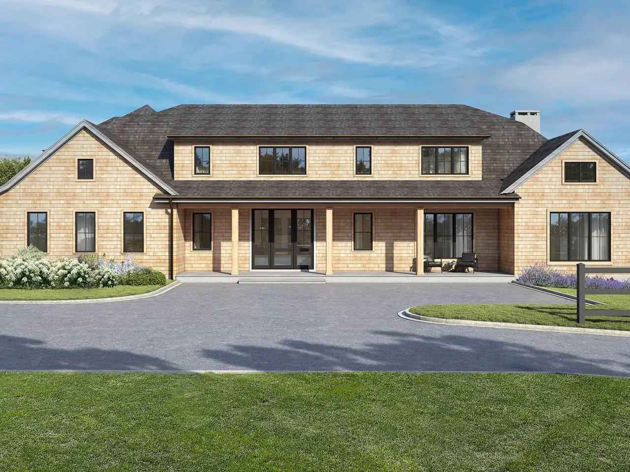 Construction is underway on this stunning new residence, perfectly sited on 1.2+/- acres with a pool, padel court, and reserve frontage on two sides for privacy and open views. This 10,000+/- sq. ft. transitional home blends traditional Hamptons charm with modern design, featuring 7 bedrooms, 7 full baths, and 1 half bath across three levels, including a light-filled walk-out lower level. Highlights include soaring ceilings, walls of glass, indoor fireplaces, glass railings, a classic cedar shake exterior with cedar roof, and a terraced yard that maximizes natural light and views. The lower level is designed for leisure and wellness, with a glass-enclosed oversized gym with yoga, sauna with a steam bath , movie theatre room, playroom, and two bedrooms, and built in storage. Outdoors, enjoy a gunite pool with spa, padel court, and sweeping lawn overlooking an apple orchard. Ready for Summer 2026!