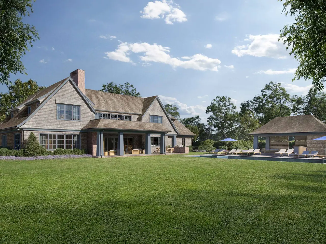 Located on a quiet cul-de-sac South of the Highway, this transitional-style home in Bridgehampton offers exceptional design, scale, and amenities. With 7 bedrooms, 8 full baths, 2 half baths, and over 9,100+/- square feet of living space on 0.93+/- acres, home is thoughtfully crafted for comfort, functionality, and style. An airy entry foyer leads to a bright and open layout that includes a living room, dining room, family room, and a custom open kitchen with a breakfast area. Hardwood flooring, high ceilings, and refined finishes run throughout, creating a cohesive and inviting atmosphere. The expansive primary suite features a spa-like ensuite bath and a generous walk-in closet. A media room, gym, bonus room, den/office, and great room provide multiple spaces for work, wellness, and entertainment across all three levels. An elevator provides easy access to and from each level. Outdoor living is elevated with a 20' x 50' heated gunite pool with spa, patio, and covered porch, perfect for enjoying warm summer days or hosting guests. The home also includes a 2-car-attached garage, a pool house with a full bathroom, an outdoor shower, and a pool cabana with outdoor covered lounge space. This is a rare opportunity to own a transitional, move-in-ready residence in one of the Hamptons' most desirable south of the highway locations. Slated for completion in 2026.