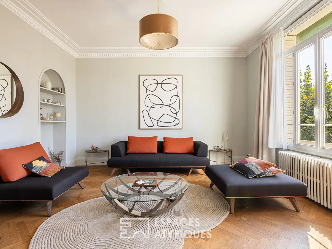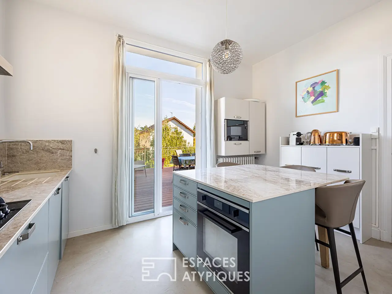 In Bron, on a quiet street in the heart of a residential neighborhood, just steps from the market square and the vibrant local scene, this charming 1930s house offers 300 sq m of living space on a landscaped plot with a swimming pool. Built on two levels, complemented by a functional ground floor, it boasts generous proportions, a fluid layout, and a secluded landscaped garden perfect for relaxation.Upon entering, a bright hallway leads to the living areas. On the reception level, an elegant living room faces a dining room, which is adjacent to a fully equipped kitchen opening onto a rooftop terrace overlooking the garden. This level also includes a first bedroom with ample storage and an en-suite shower room, as well as a separate toilet and discreet storage. Upstairs, a central landing leads to six bedrooms, two of which are currently used as a TV lounge and reading area.A double shower room with a toilet completes this level. On the ground floor, a music room of approximately 30 square meters sits alongside utility spaces: a boiler room, laundry room, workshop, separate wine cellar, and a closed garage with direct access to the garden. Outside, the landscaped garden provides privacy for the swimming pool, the true heart of this garden. Mature vegetation, terraces, and a secluded layout lend the property a serene atmosphere. The location, set back from the urban bustle yet close to amenities and main roads, enhances the appeal of the property. With its preserved character, generous proportions, family potential, and high-quality surroundings, this property represents a unique and rare find in the area.ENERGY RATING: E / CLIMATE RATING: DEstimated average annual energy costs for standard use, based on energy prices for 2021, 2022, and 2023 (including subscription): between EUR6,080 and EUR8,290.Energy Performance Certificate (EPC): Contact us for details on energy optimization.Contact: Axel - 33 6 67 68 57 45REF. 13141Additional information* 9 rooms* 7 bedrooms* 2 shower rooms* Floor : 2* Outdoor space : 776 SQM* Property tax : 2 200 €Energy Performance CertificatePrimary energy consumptione : 327 kWh/m2.yearHigh performance housing*A*B*C*D*327kWh/m2.year49*kg CO2/m2.yearE*F*GExtremely poor housing performance* Of which greenhouse gas emissionsd : 49 kg CO2/m2.yearLow CO2 emissions*A*B*C*49kg CO2/m2.yearD*E*F*GVery high CO2 emissionsEstimated average annual energy costs for standard use, indexed to specific years 2021, 2022, 2023 : between 6080 € and 8290 € Subscription IncludedAgency feesThe fees include VAT and are payable by the vendorMediatorMediation Franchise-Consommateurswww.mediation-franchise.com29 Boulevard de Courcelles 75008 ParisInformation on the risks to which this property is exposed is available on the Geohazards website : www.georisques.gouv.fr