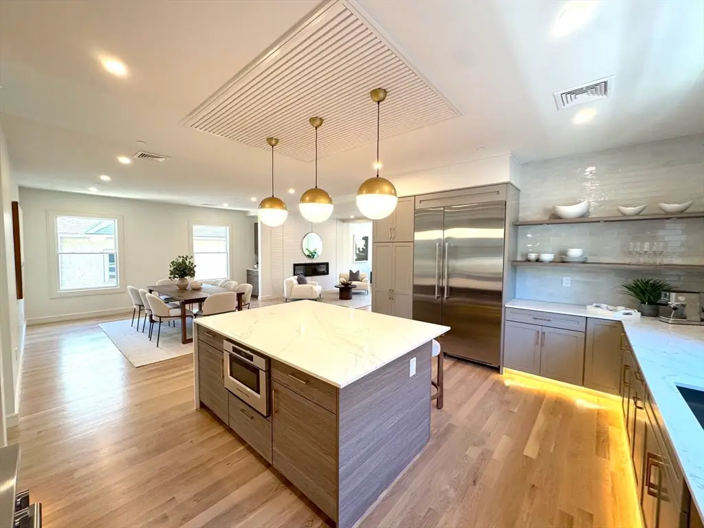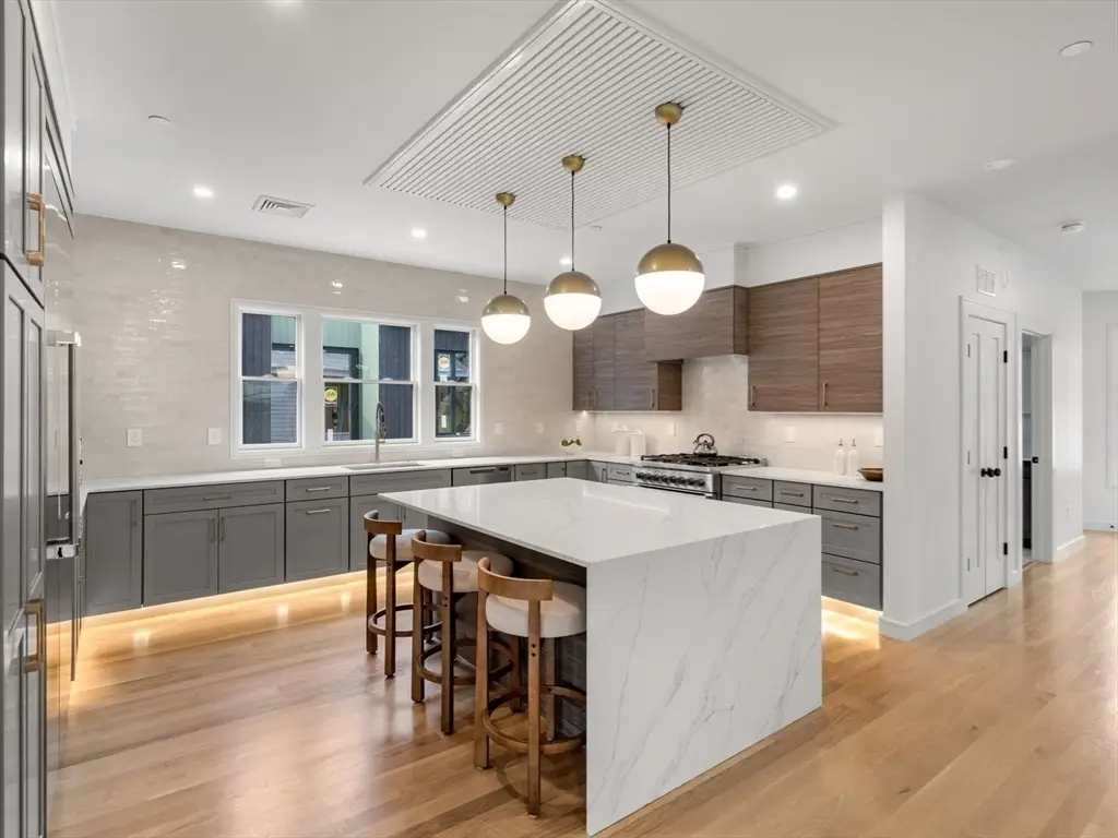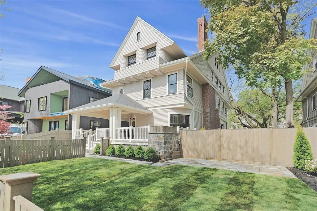 Exceptional. Refined. Yours. This luxury 5 bed, 4.5 bath tri-level residence with nearly 4,000sf, private outdoor space and 3-car parking (EV) offers the feel of a SF home - right in the heart of Washington Square. More than a renovation, a complete reimagining of a Brookline classic blending Victorian era detail with high-end construction & luxury finishes. Soaring 9-10' ceilings, a wide-open floor plan, and captivating chefÆs kitchen set a welcoming tone for entertaining and daily living. And design allows for a main-level guest suite, media room or play place. Upstairs are a luxurious primary suite offering a serene retreat with vaulted ceilings, dual walk-in closets and lovely bath plus three family ensuite BRs and a loft study. Construction is optimized for energy efficiency, quiet and light, and the land for spacious exclusive-use yard, patio and outdoor storage. Walk to the MBTA, Driscoll, shops, restaurants, Whole Foods and easy access to Longwood Medical, Boston & Cambridge.