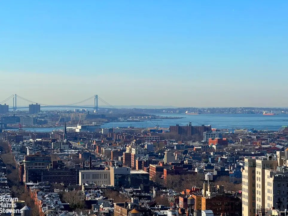 Rare opportunity to purchase a spacious high floor corner 3 bedroom, 2 bathroom home with uninterrupted sweeping views of city and Harbor. All rooms are flooded with light from 14 oversized windows. There's a spacious living room of more than 30 feet that flows seamlessly to a dining alcove area and private balcony and a wall of windows. Imagine enjoying dining and enjoying such incredible views. There is a brand new never used new kitchen with a full stainless steel appliance package. Both bathrooms have a number of upgrades The bedrooms are just as spaciously scaled. The master suite features an en-suite bathroom and dressing area. There ample closets thru out. All this with a reasonable maintenance in a highly sought after in hi rise co-op building. Featuring 24/7 doorman services, storage on each floor, package room, beautiful lobby, new gym, community room, lovely planted terrace garden with a separate playground, bike room. Indoor parking garage and on-site management and super All located in the heart of Brooklyn Heights, near shopping, dining. The Promenade and Brooklyn Bridge Park. Nearby are multiple Subway lines. One stop to Manhattan. Call for your private showing..