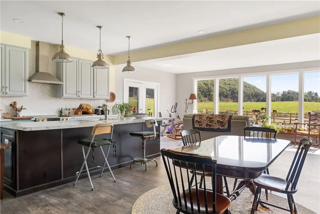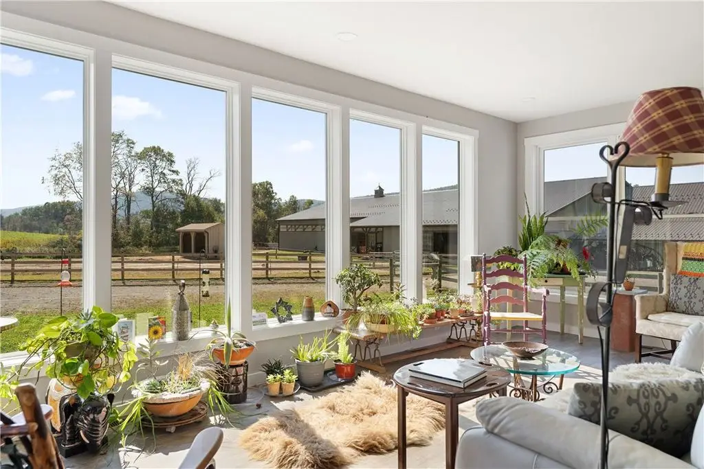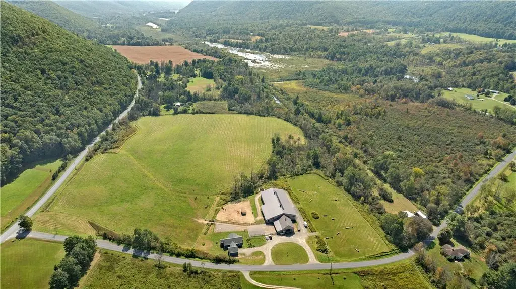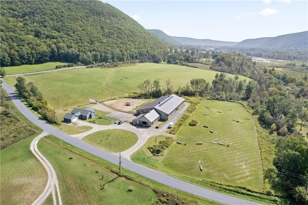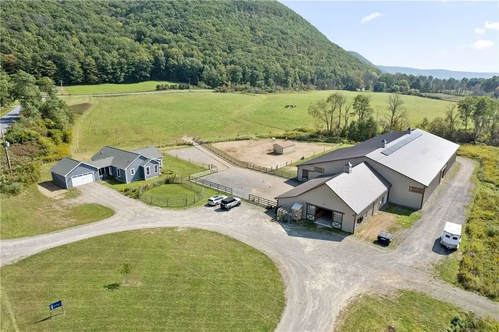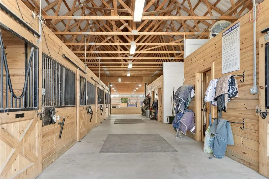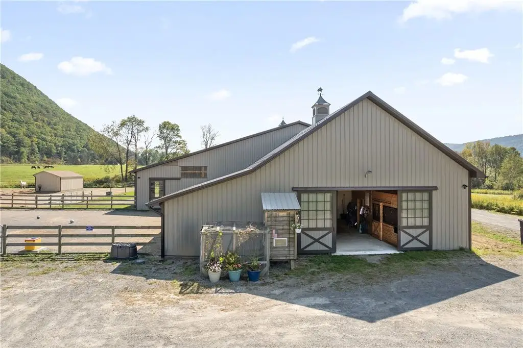 This exceptional equestrian property offers a rare combination of features. Set on 30 acres only 15 minutes from Cornell University in the Finger Lakes region, this facility's amenities are top of the line! The barn features 6 stalls, all with 12x12' mats, outlets and automatic waterers, a wash stall, heated bathroom, feed room, and heated tack room with observation area. 5 stalls have Dutch doors to the run-in shed and dry lot paddock that leads to a 20-acre pasture. The 80 x 160 indoor arena is perfect for year-round equestrian needs and the professionally built turf riding field with cross country jumps offers even more riding space. An additional paddock with run-in and large storage area off the arena round out this elite facility. Relax and watch your horses through the wall of windows in your 2020, 3-bedroom home with an open floor plan, 9-foot ceilings, lots of light, a perfect primary suite and plenty more space in the basement to expand or use for gym/rec activities. Geothermal heat for the home and solar for the house and stable result in very low utilities. Currently an income producing boutique boarding business. Continue a business or use it all for your own horses!
