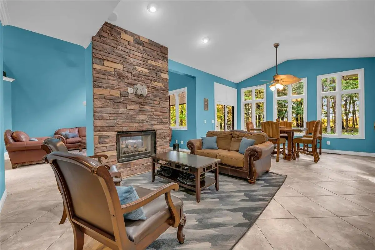 Welcome to your private paradise in Bruce Township! This custom-built luxury estate sits behind a gated entrance on 3+ secluded acres, surrounded by mature trees and professional landscaping. Built in 2004 with over 7,200 square feet of beautifully designed living space, this home offers exceptional craftsmanship and every amenity you could ask for. The grand two-story great room features floor-to-ceiling windows, filling the home with natural light and offering stunning wooded views. Enjoy cozy evenings by the stone fireplace shared with the hearth room, or entertain in style in the gourmet kitchen with an abundance of storage, granite counters, a large center island, and stainless-steel appliances. The four-seasons sunroom and covered patio invite you to relax and take in the peaceful surroundings — the perfect spot for morning coffee or evening gatherings. The first-floor primary suite is a true retreat, featuring a tray ceiling, crown molding, dual walk-in closets, and a spa-like en-suite with a jetted tub, Euro glass shower, and dual vanities. A formal dining room, office with French doors, large mudroom/drop zone, and laundry area complete the main level. Upstairs, three spacious bedrooms with walk-in closets, private or shared baths, and a large 29’x15’ bonus/game room. The finished lower level is ideal for entertaining, featuring a full second kitchen and bar area with beverage and wine coolers, a billiards/media room, a full bath, and space for guests or recreation. Step outside and enjoy your backyard oasis with a stamped concrete patio. Additional highlights include a 4-car heated garage, a hookup for a full house generator, a 3-zone HVAC system, and a circular driveway. This home truly has it all — just minutes from Romeo, Rochester, and major highways. Don’t miss your chance to own this exceptional property — schedule your private tour today! BATVAI.
