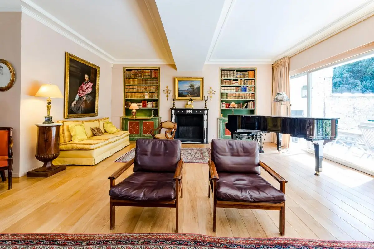 In the very exclusive Square du Bois, a beautiful house with character and a splendid south-facing garden designed by Jacques Wirtz, opening onto the Bois de la Cambre (plot of approximately 6 ares85). Living space of approximately 600 square meters currently divided into two units: a duplex garden level of 400 square meters and a duplex penthouse of 200 square meters enjoying a beautiful panoramic terrace. Service flat (two bedrooms, bathroom). Lift. Garage for two cars. PEB D.