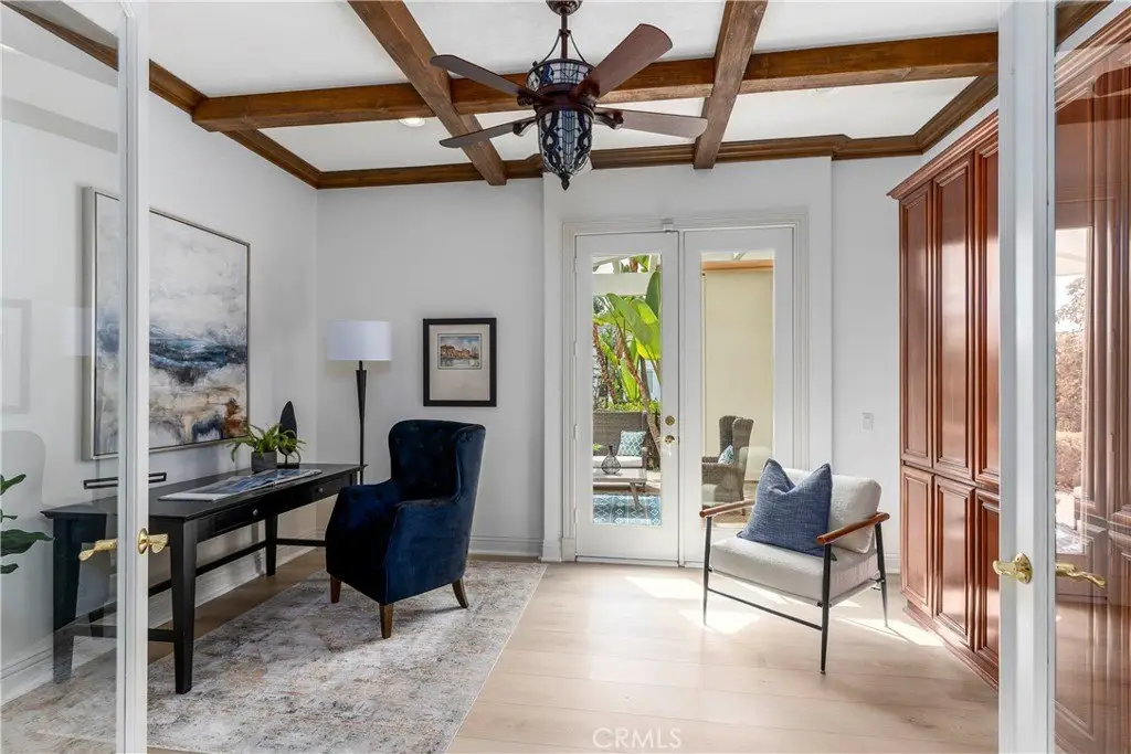 Welcome to Mont Calabasas, one of the most exclusive gated communities in Calabasas. This elegant estate greets you with a private courtyard featuring a tranquil water fountain and a pergola-covered sitting area, setting the tone for refined living. Inside, a grand foyer with soaring ceilings and a dramatic circular staircase bathed in natural light makes an immediate impression. The home has been updated with new flooring and fresh interior paint throughout. Formal living and dining rooms, each with a fireplace, provide timeless settings for entertaining. A spacious family room with a fireplace opens seamlessly to the chef’s kitchen, appointed with a center island, granite counters, new double ovens, microwave, wine refrigerator, and a built-in 48-inch stainless steel refrigerator. A breakfast nook and island seating complete the space. The nearly half-acre grounds are a private resort, offering a sparkling pool, spa, water features, multiple outdoor seating areas, and a built-in BBQ for alfresco dining. Designed for both comfort and function, the floor plan includes one bedroom and a dedicated office downstairs, plus four bedrooms and an additional upstairs family room. The luxurious primary suite is a private retreat with a sitting area, fitness room, spa-like bath with dual vanities, oversized walk-in closets, and balconies overlooking the park-like grounds. Additional highlights include a whole-house water treatment system and thoughtful upgrades throughout. This residence blends timeless elegance with modern amenities, delivering the ultimate Calabasas lifestyle.
