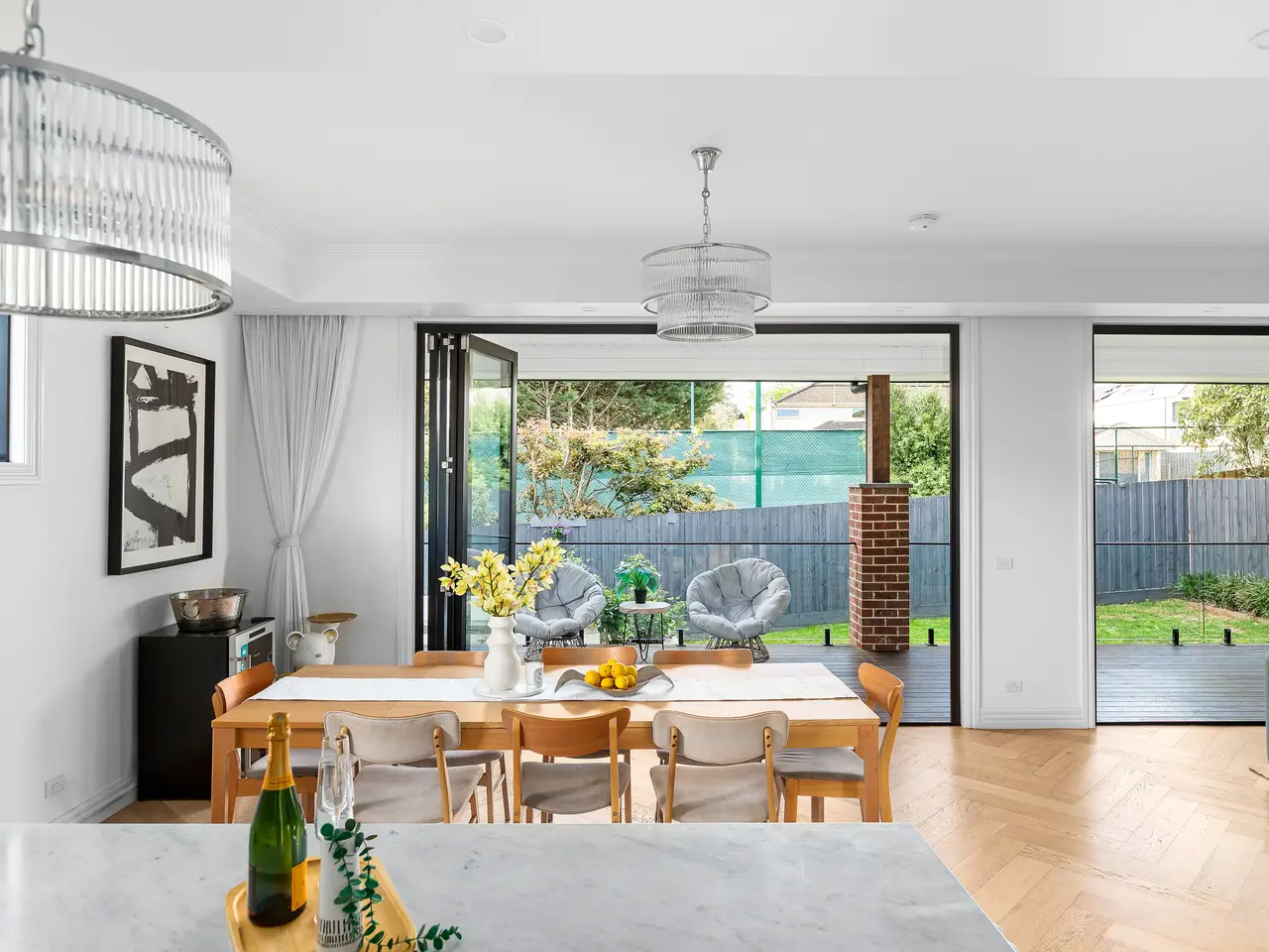 Expressions of Interest closing Monday 17th November at 6:00pm Step into a world of refined sophistication with this stunning freestanding contemporary residence, where impeccable design and exceptional quality combine to create the ultimate family haven. Set in a peaceful pocket moments from Lynden Park, this luxurious home impresses with its generous proportions, intelligent family zoning, and flawless attention to detail. Behind secure surrounds, an inviting entrance with elegant timber floors welcomes you into the light-filled open-plan living and dining space that seamlessly connect to a gourmet kitchen featuring stone benchtops and premium appliances. The living area flows effortlessly to a magnificent undercover north-facing deck overlooking a beautifully landscaped garden, complete with an additional decked zone and lush lawn, perfect for family relaxation, alfresco dining, and effortless entertaining. Downstairs, the main bedroom offers a serene retreat with a designer ensuite and spacious walk-in robe. Upstairs, a sun-drenched retreat provides an ideal second living area opening to a charming north-facing balcony. The upper level also features a second main bedroom with a double-basin ensuite and walk-in robe, plus two additional bedrooms with built-in robes and a stylish central bathroom, ensuring comfort and privacy for family and guests alike. Additional features include a full-sized laundry with adjoining powder room, a remote double garage with internal access, additional off-street parking, and ample storage throughout, including under stair storage. Perfectly positioned in a prestigious Camberwell pocket, this home is zoned for Hartwell Primary and Camberwell High, with easy access to leading schools, Hartwell Village cafes, Lynden Park, Back Creek Trail, and Toorak Road's dining and shopping. A rare opportunity to secure a premium residence in one of Camberwell's most sought-after locales, where luxury, lifestyle, and location align perfectly.
