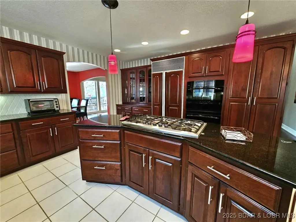 Step inside and be wowed by the stunning floor-to-ceiling brick fireplace, perfect for cozy evenings. Vaulted ceilings and an open living area. Spacious kitchen, complete with a breakfast nook, cabinets galore, double oven, and a gas cooktop. Enter through the garage into a handy mudroom/office that effortlessly flows into the kitchenideal for unloading those grocery hauls. The dining area has a wall of windows and seating for 14. Main level master suite with a lavish bathroom, featuring double sinks, tub, a walk-in shower, and a private toilet room. Step out onto the screened porch and soak up the lake views. Descend the gorgeous staircase to find yourself in the family room, with yet another brick fireplace and a wet bar for entertaining. The lower level is complete with two bedrooms and a bath on each side of the living space, plus a utility room with storage and a second washer and dryer set. The lower level deck offers more outdoor gathering space. Lets not forget the concrete dock, which includes two boat slips, a PWC slip, and a dock shed, making this the ultimate waterfront retreat. After 16 cherished years, the seller is ready to hand over the keys to this beauty.
