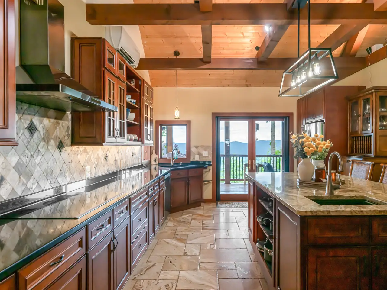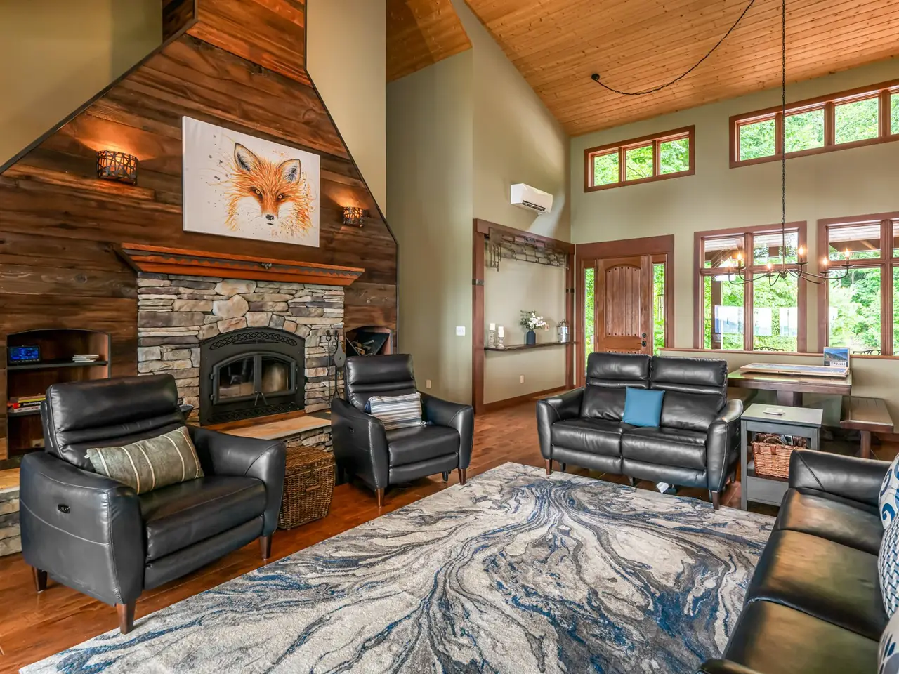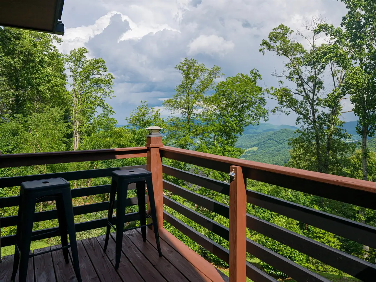 Year round views are stunning from this elevation of over 3500 feet. Main house has upper and lower primary en suites, a lower level entertainment room, additional bedroom/office with views and over 1500 feet of covered decks. The detached garage apartment and additional 2.24 buildable lot with views, makes this property impressive for large family or 3 rental income potentials. The outdoor enthusiast will enjoy the tiered garden area, small orchard, bees, fruit trees, and cutting your own wood for the stone fireplace in great room. Located inside the small, gated community of: The Bluffs at Curtis Creek and within a few miles to dining, shopping, new State Park, Blue Ridge Parkway and Asheville you can enjoy privacy with convenience.