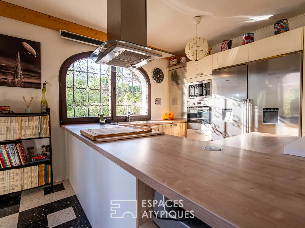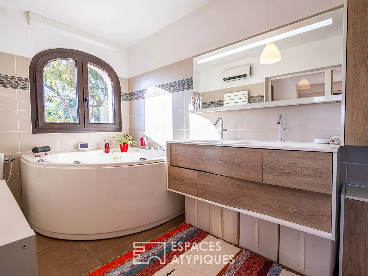 Located only a few minutes from the beaches and the center of Canet-en-Roussillon, this villa of approximately 256 m2 is inspired by Mediterranean architecture and the authentic hacienda spirit. Built on a landscaped plot of more than 7,000 m2 in a peaceful, green environment, it combines southern charm, generous volumes, and multiple layout possibilities?ideal for a large family, a guesthouse project, or professional use.At first glance, its arched windows and elegant wooden shutters give it a warm, timeless allure. Natural light floods through the large curved openings, highlighting the softness of the materials and the serene atmosphere that permeates every room.The villa is organized around three independent living spaces that can be connected or used separately as needed. On the ground floor, a complete apartment with living room, open kitchen, sleeping area, and two bathrooms with toilets can easily be divided into two separate studios. Upstairs, a second apartment offers a living room, storage area, master suite with built-in wardrobes, WC, and a fully equipped kitchen opening onto a private terrace. The main part of the house features a spacious living room with fireplace, an equipped kitchen, an office, and a dining room. Designed in a U-shape, it is centered around a large terrace that can be fully enclosed, turning it into an additional living space during cooler seasons.Upstairs, two bedrooms, including a master suite opening onto a long terrace with open views of nature and the mountains, are complemented by a contemporary bathroom. Both functional and full of character, this villa charms with its southern atmosphere, brightness, and vast potential.Outdoors, everything invites relaxation: a large landscaped garden with olive and fruit trees, a covered heated and cooling pool (10×5 m), a petanque court, and multiple sun-drenched terraces. A 70-meter-deep borehole provides water to several points throughout the property, while a water softener and complete technical installations ensure optimal comfort. Parking is easy with a double garage, two covered spaces, and a large secured area accommodating several vehicles.Energy class: DREF. 13138MFAdditional information* 7 rooms* 5 bedrooms* 1 bathroom* 4 shower rooms* Outdoor space : 7000 SQM* Property tax : 3 187 €Energy Performance CertificatePrimary energy consumptiond : 170 kWh/m2.yearHigh performance housing*A*B*C*170kWh/m2.year16*kg CO2/m2.yearD*E*F*GExtremely poor housing performance* Of which greenhouse gas emissionsc : 16 kg CO2/m2.yearLow CO2 emissions*A*B*16kg CO2/m2.yearC*D*E*F*GVery high CO2 emissionsAgency feesThe fees include VAT and are payable by the vendorMediatorMediation Franchise-Consommateurswww.mediation-franchise.com29 Boulevard de Courcelles 75008 ParisInformation on the risks to which this property is exposed is available on the Geohazards website : www.georisques.gouv.fr