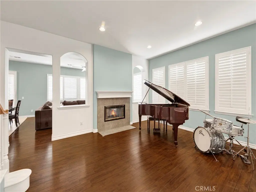 Welcome to this beautifully maintained 5-bedroom, 3-bathroom home located in the highly sought-after Sunset Heights community. From the moment you arrive, you're greeted by a grand double-door entrance that opens into a warm and inviting interior. Enjoy the charm of a double-sided fireplace that adds cozy ambiance to both the living and family rooms—ideal for relaxing or entertaining. The kitchen is a true centerpiece, featuring ample cabinetry, generous storage space, and a large island perfect for gatherings and casual dining. Plantation shutters throughout the home add timeless character, while natural light floods the space. Downstairs offers a versatile bedroom—perfect as a guest suite, home office, gym, or in-law room. Upstairs, the primary suite is a private retreat, complete with two closets, a balcony for morning coffee or sunset views, and a luxurious en-suite bathroom with a soaking tub, dual sinks, and a dedicated vanity. Three additional bedrooms and a spacious bonus room provide flexibility for a home theater, game room, or extra lounging area. Additional features include: Three-car garage Paid-off solar system to help reduce energy costs Low HOA that covers neighborhood security and common area maintenance Expansive backyard ready for your creative touch—add a garden, pool, or outdoor kitchen to make it your own Don't miss this opportunity to own a well-appointed home in one of the area's most beloved communities!