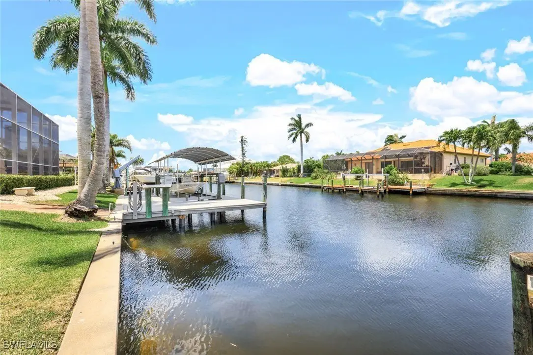 Custom built gorgeous home with DIRECT Sailboat Gulf Access. Two-story, three bedrooms, office/den, and a huge billiard or game room. Oversized and custom pool, in-ground spa, boat dock, with boat lift. A few recent updates and upgrades: New roof, new siding, skylights, and ceiling-to-floor impact glass in eat-in-kitchen. Whole home fresh paint. A complete kitchen remodel with new KitchenAid appliances including a 48-inch built-in refrigerator. Master bathroom update and remodel, a stunning walk-in shower with multiple shower heads, new countertops and bathroom fixtures. The pool and lanai area now have brand new outdoor kitchen, never used pool full bathroom downstairs. The owners are downsizing, and have meticulously maintained this home. Easy access to Cape Harbor and Tarpon Point Marina and a short ride to The Gulf of Mexico. There are so many special features to this home. If you are looking for a beautiful, gulf access, home, then this home is a MUST SEE!